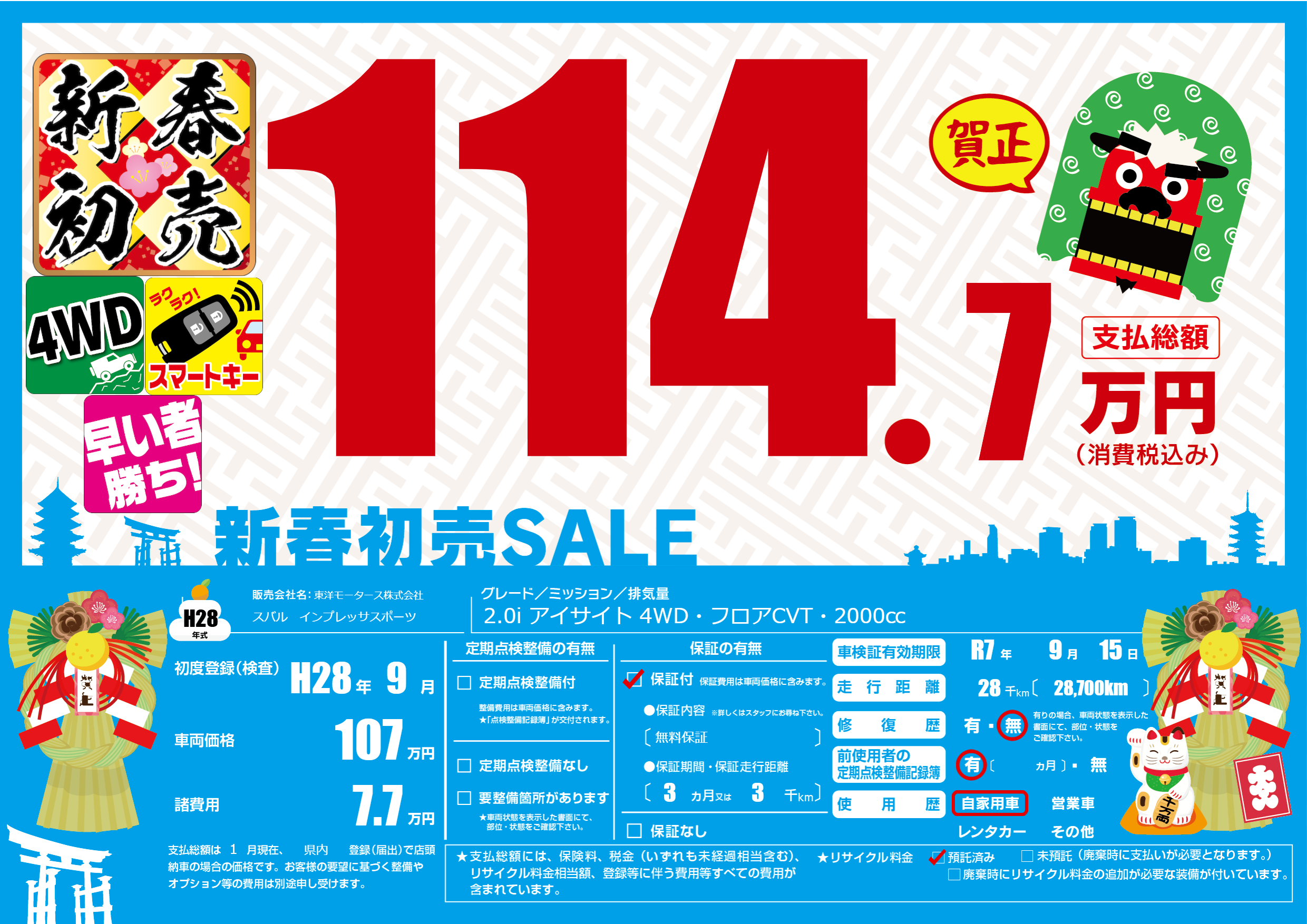| 車名 | スバル インプレッサスポーツ | グレード ミッション 排気量 |