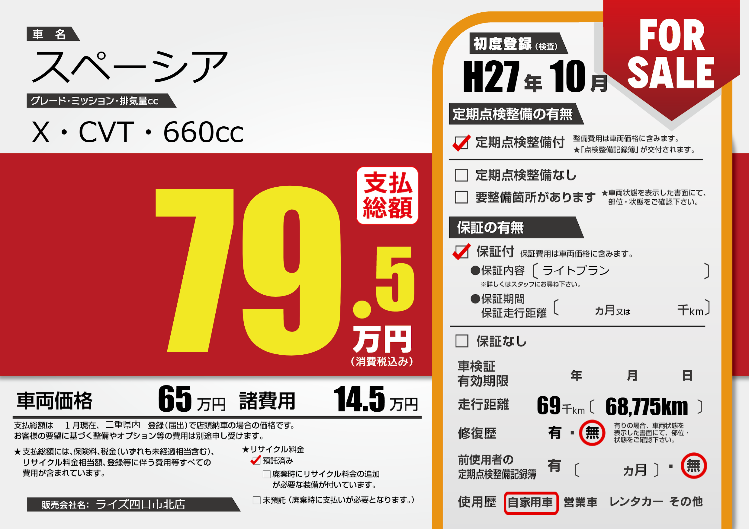 保証付き 保証内容(ライトプラン) ---ヶ月または()千kmまで |