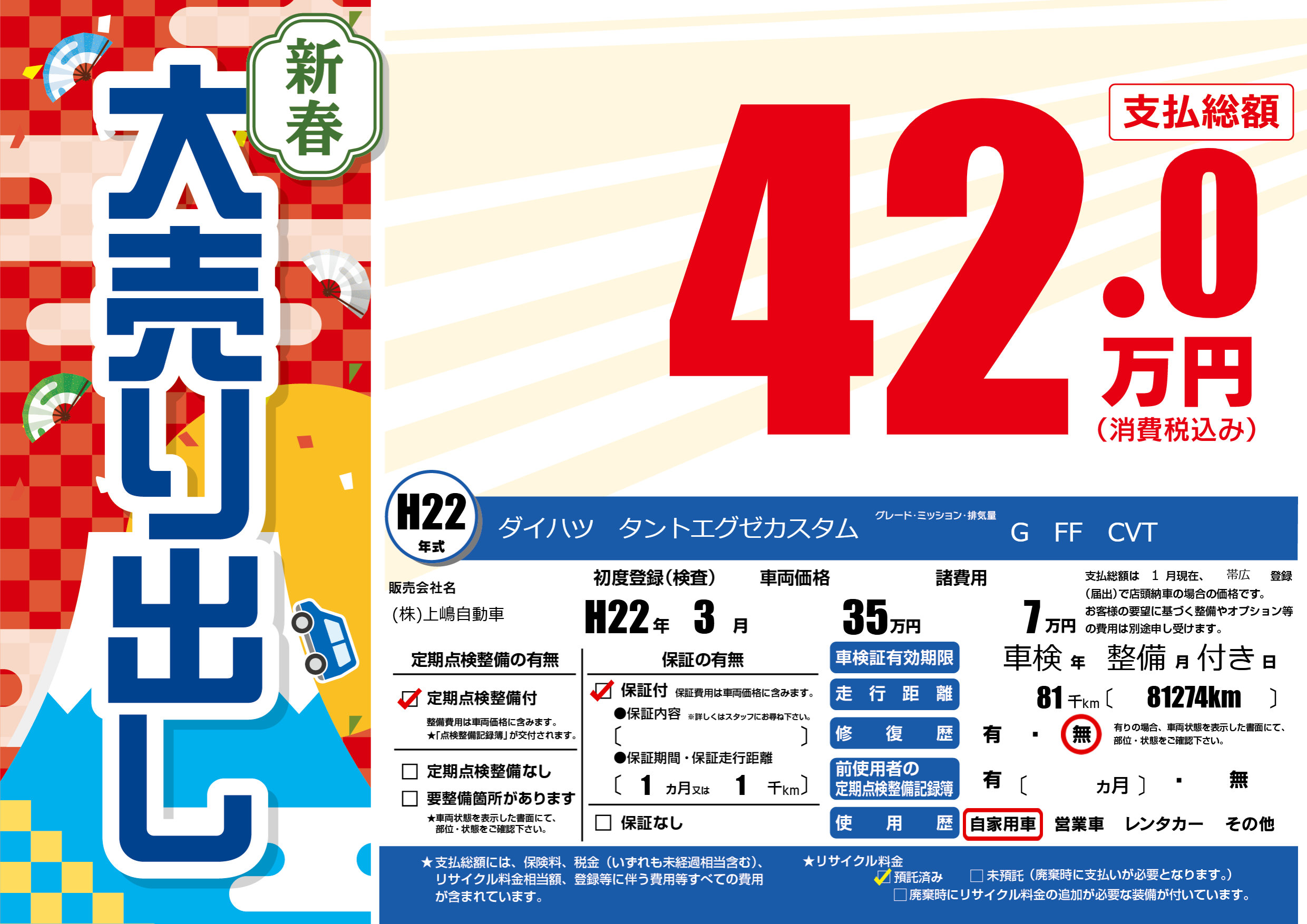 | 走行キロ | 8.1万km | 初年度登録 | H22年3月 |