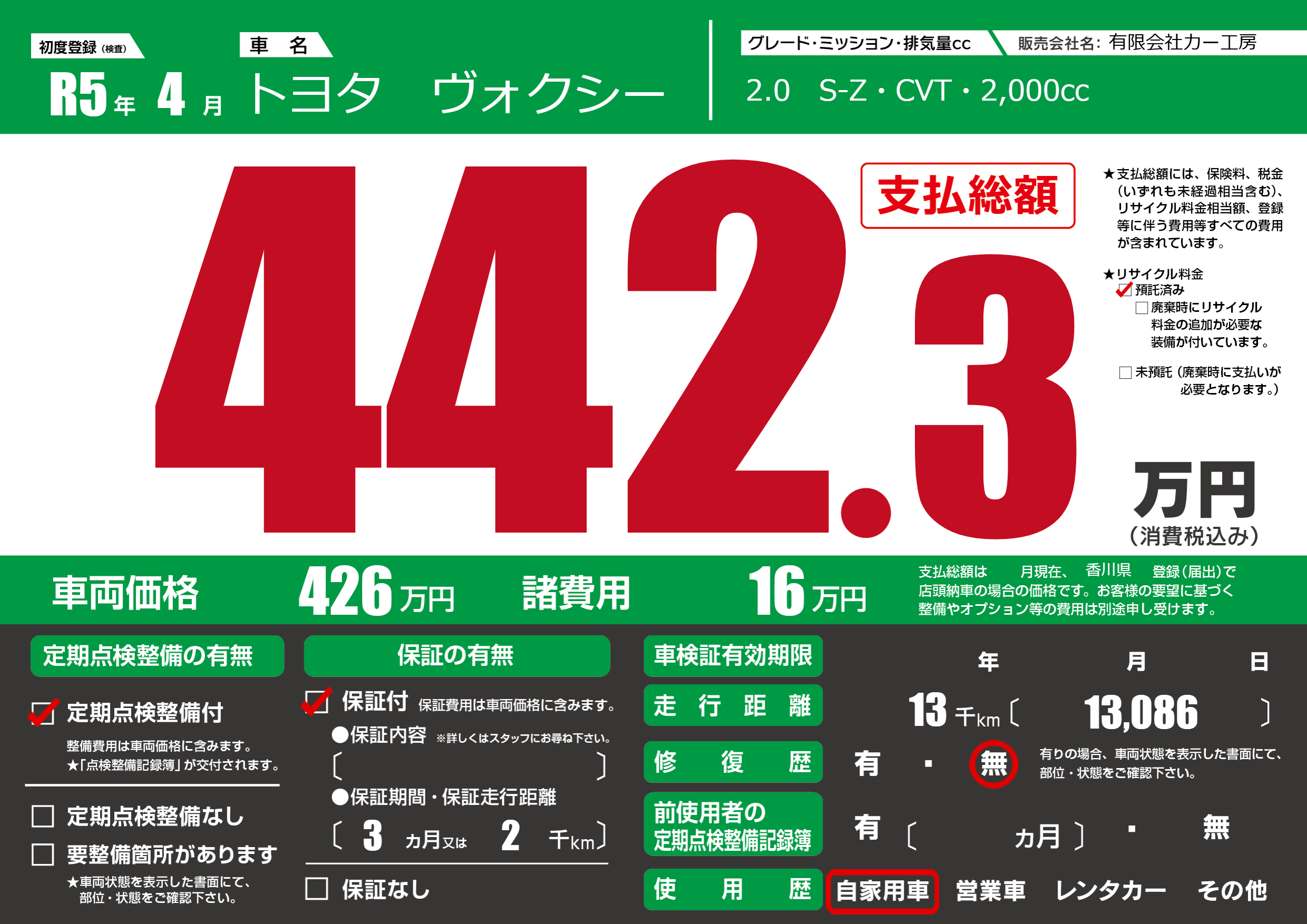 | 走行キロ | 1.3万km | 初年度登録 | R5年4月 |