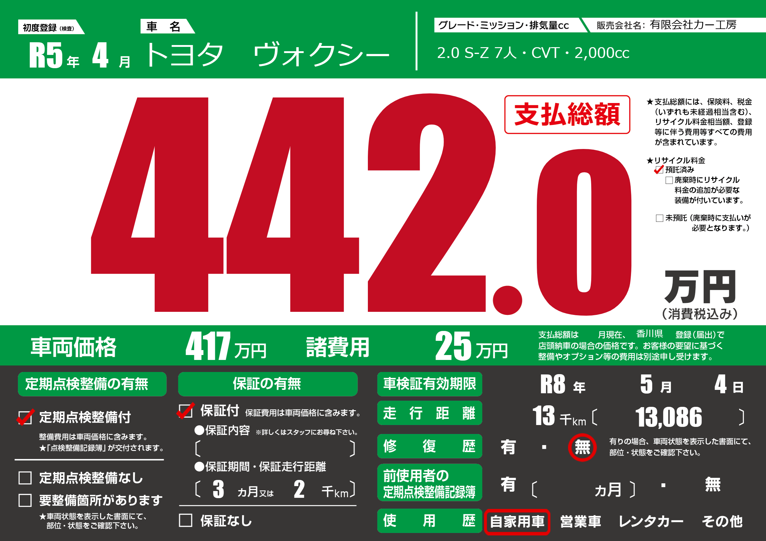 | 走行キロ | 1.3万km | 初年度登録 | R5年4月 |