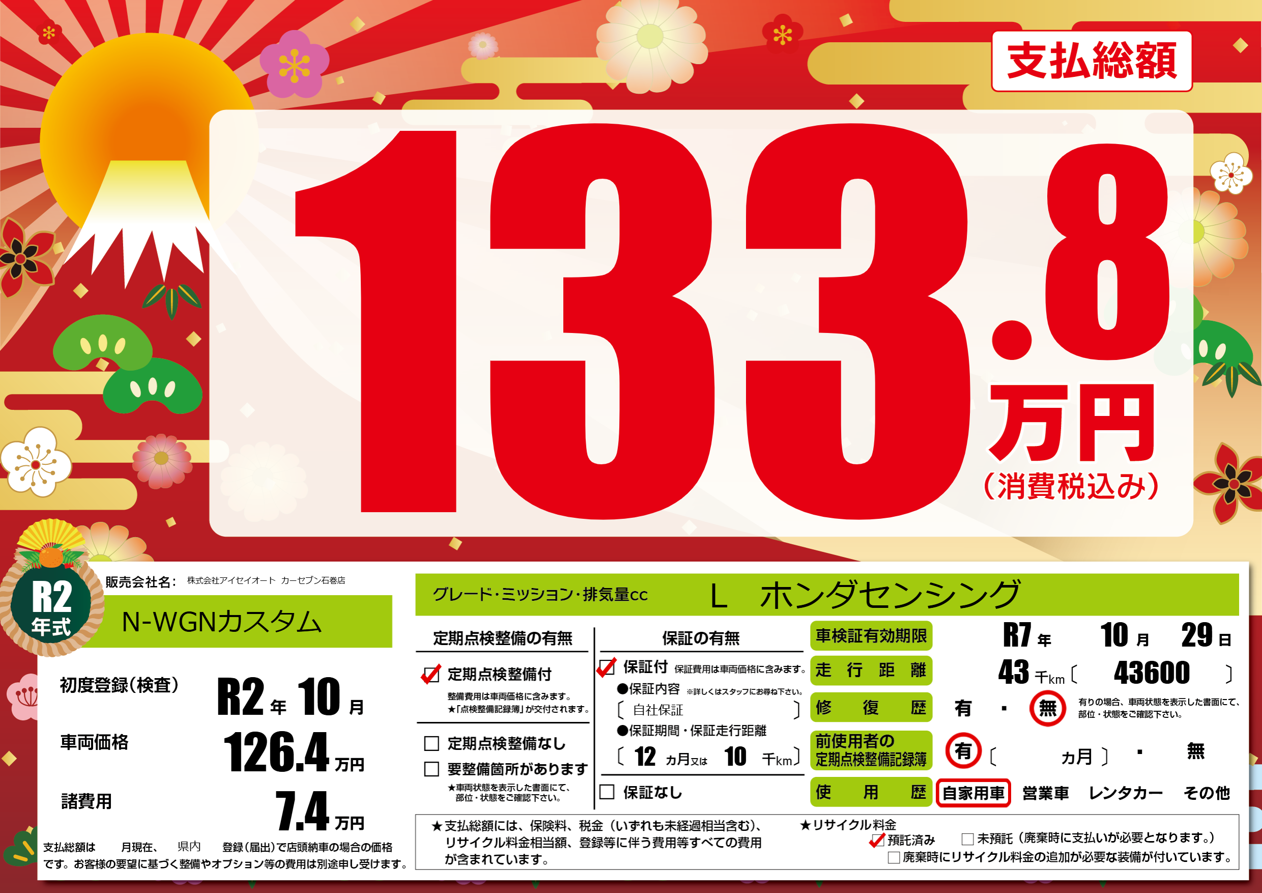 | 車名 | N-WGNカスタム | グレード ミッション 排気量 |
