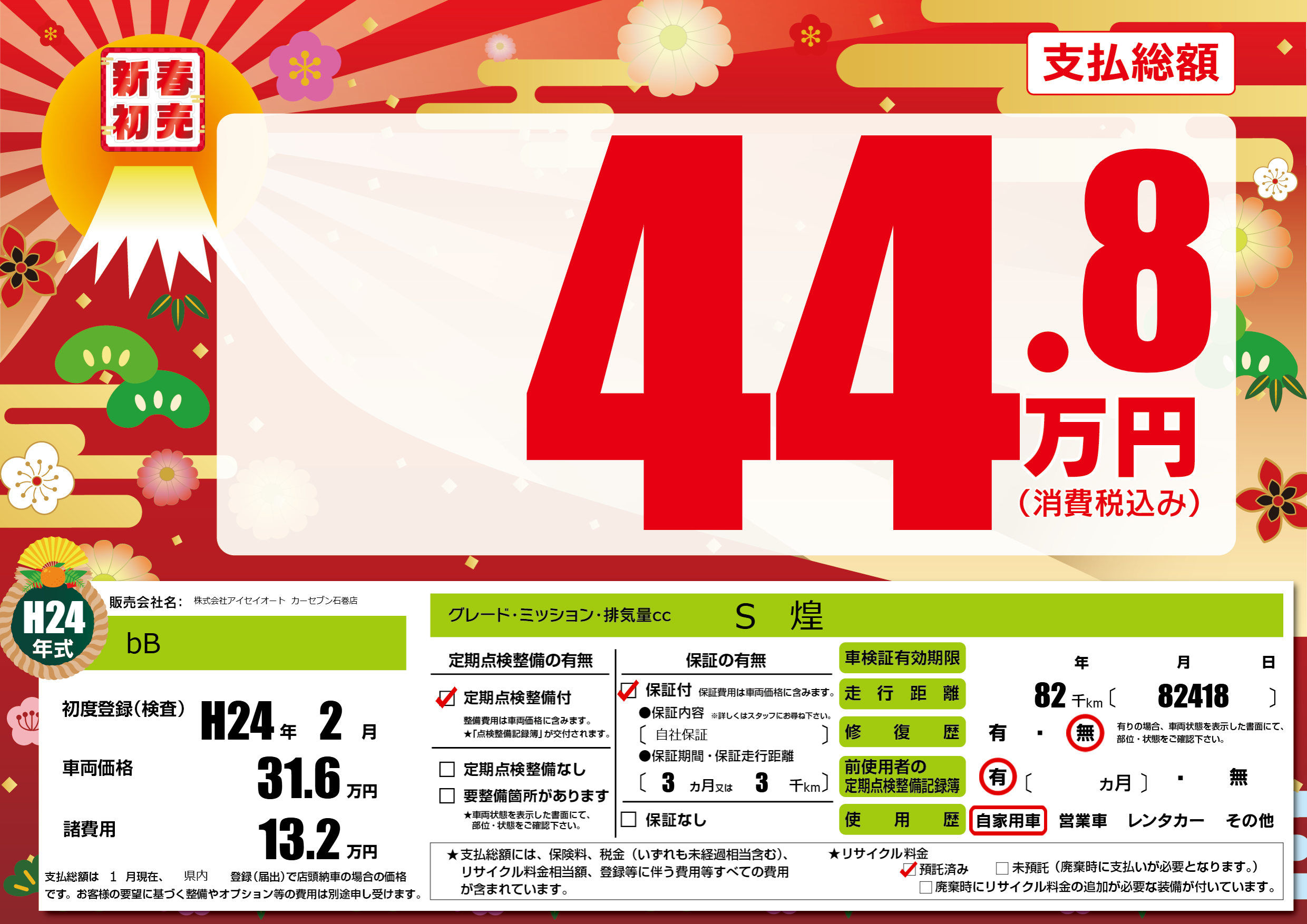 | 走行キロ | 8.2万km | 初年度登録 | H24年2月 |