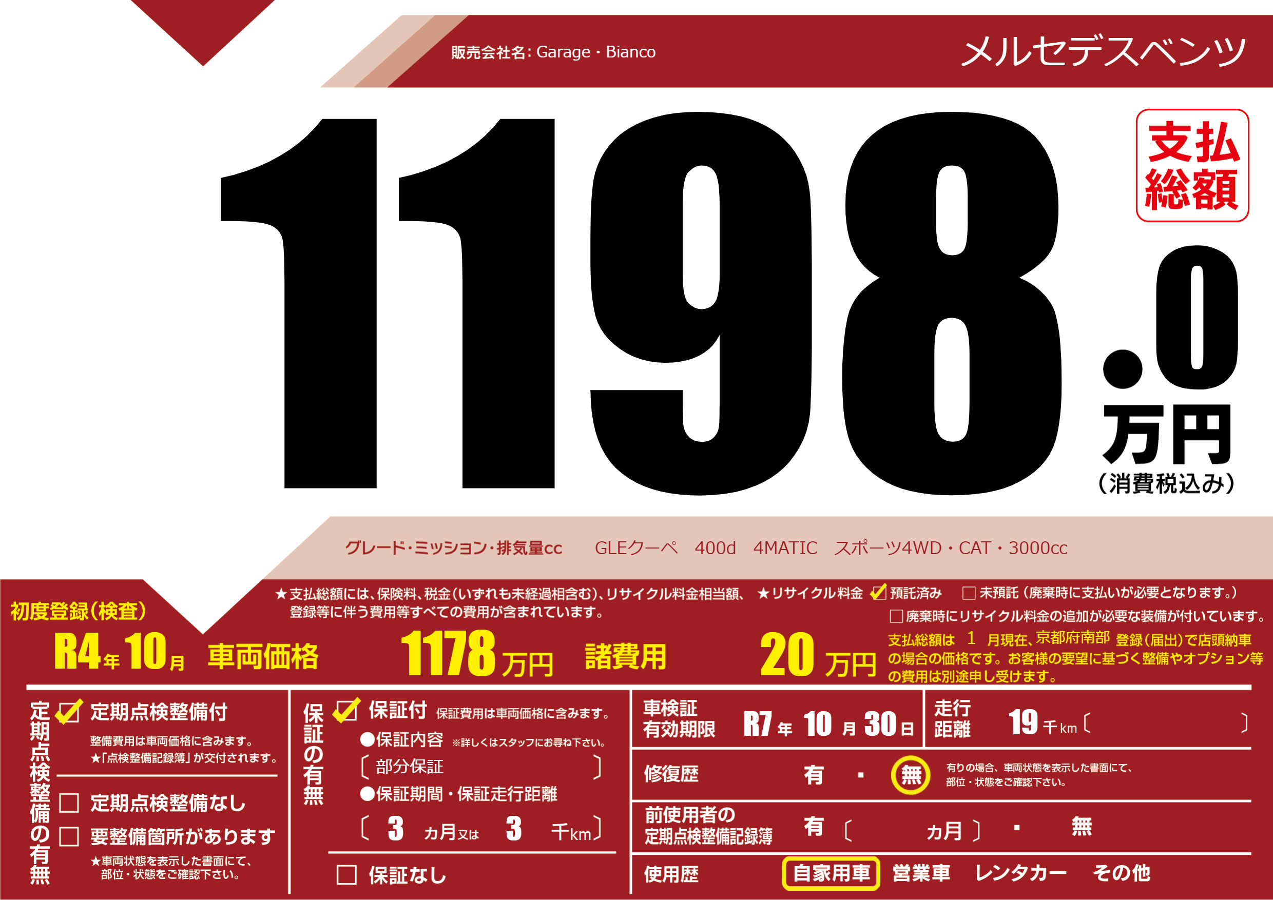 | 定期点検整備 | 定期点検整備あり | ||