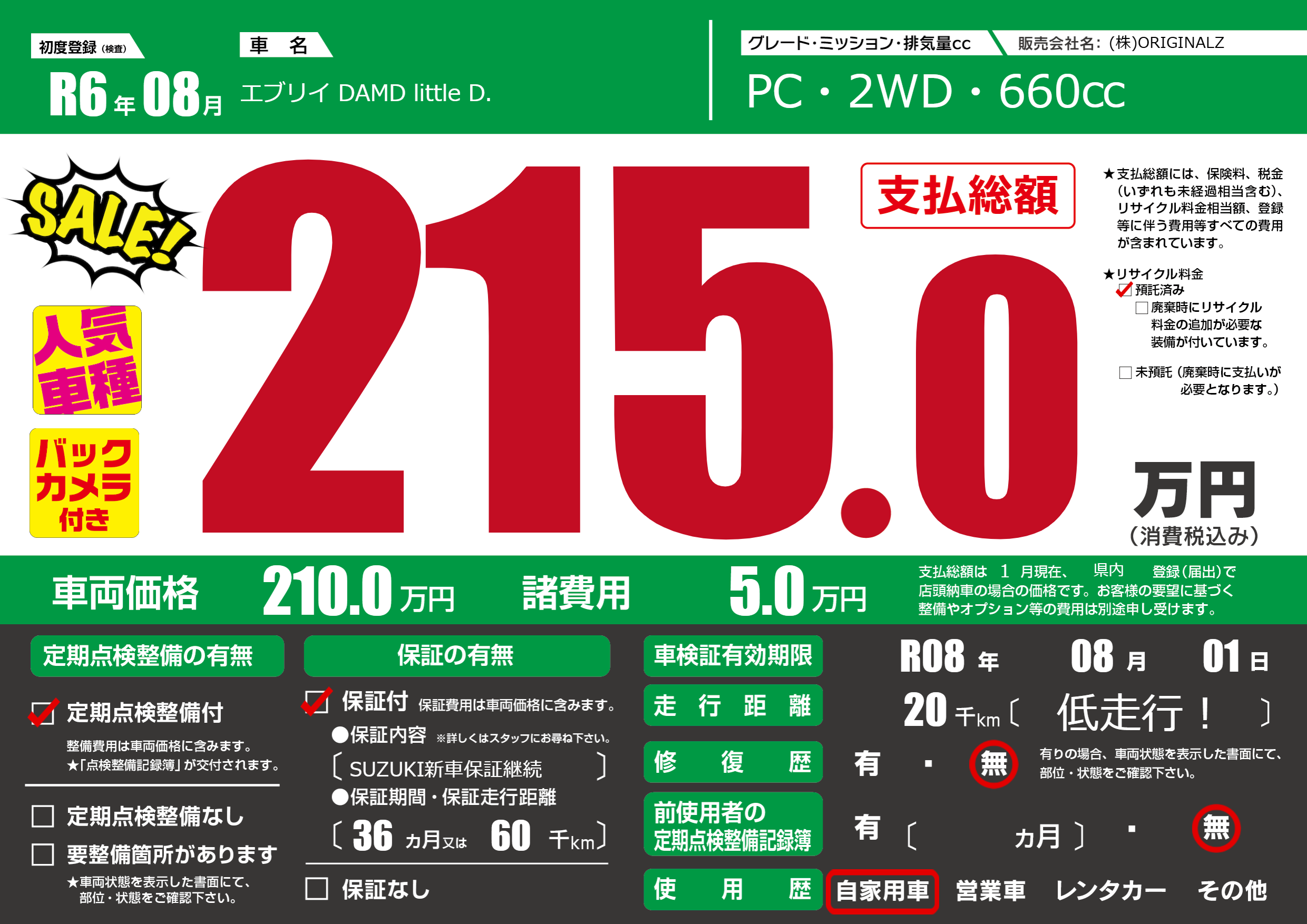 | 車検制限 | R08年 08月 01日 | ||