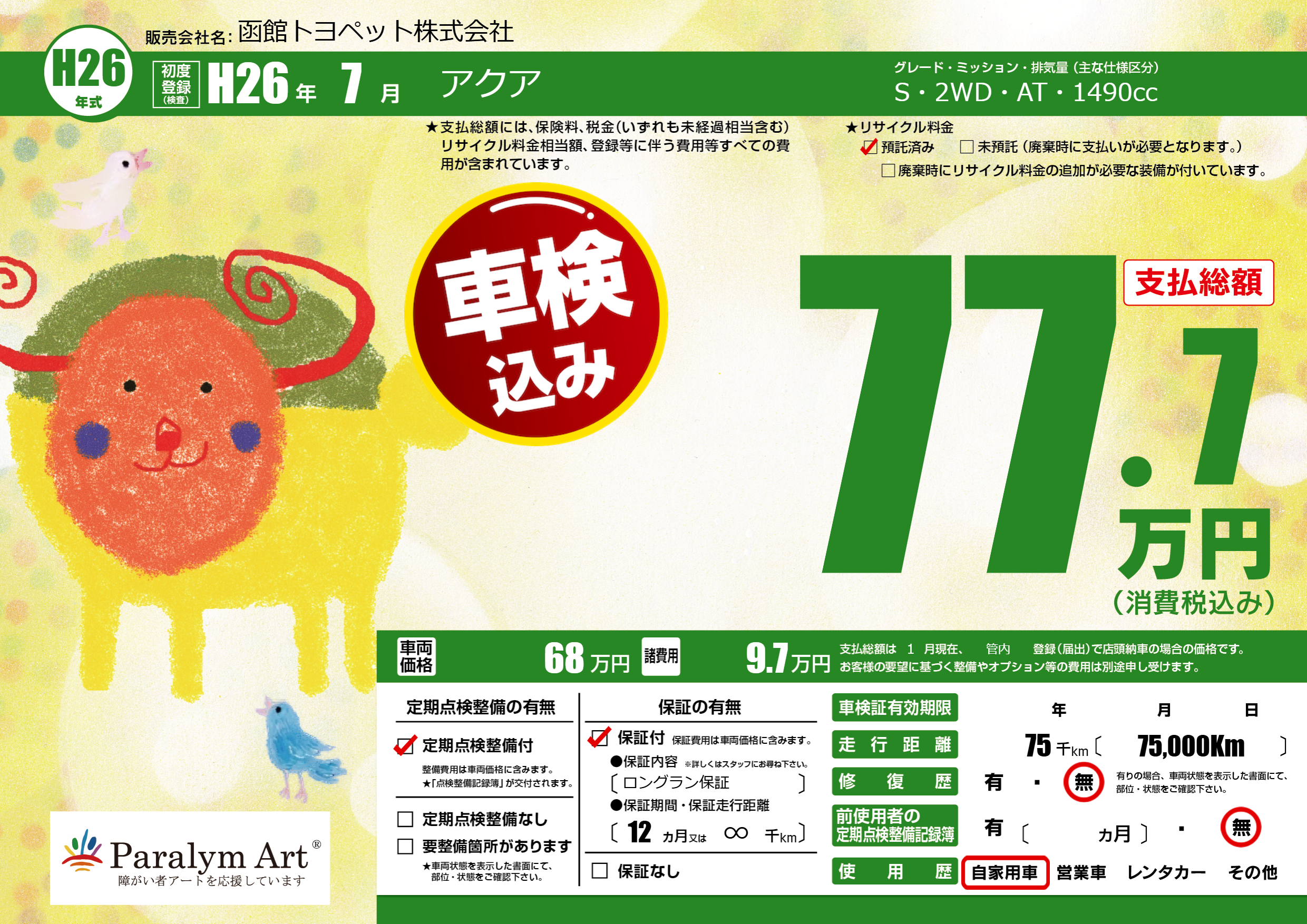 | 走行キロ | 7.5万km | ||