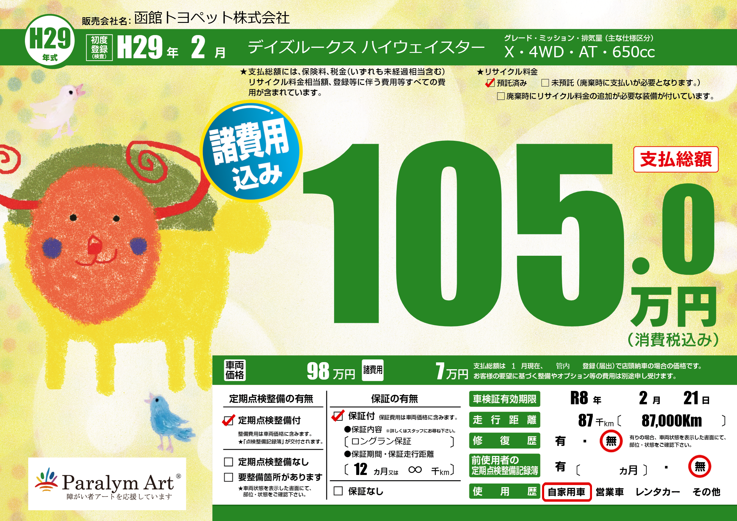 | 走行キロ | 8.7万km | ||
