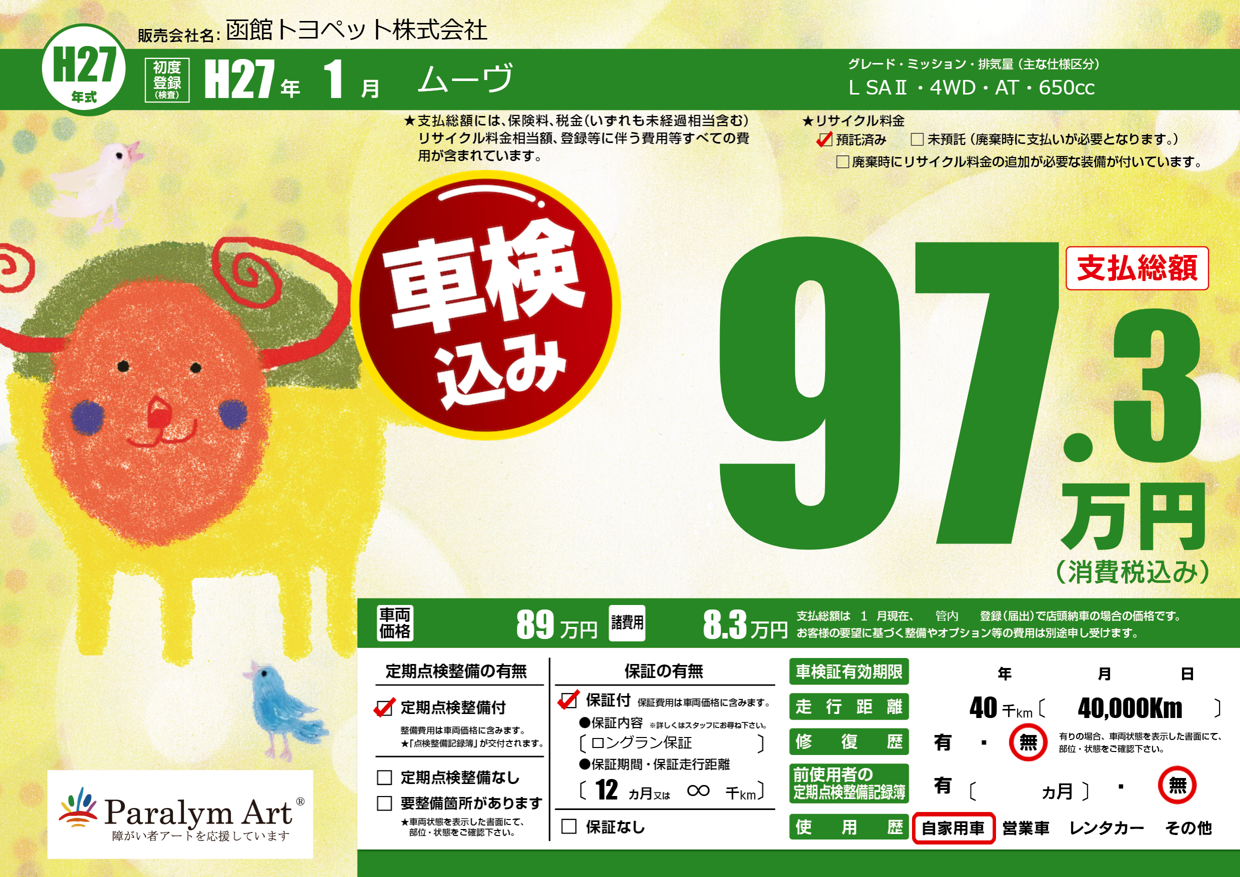 | 走行キロ | 4万km | ||