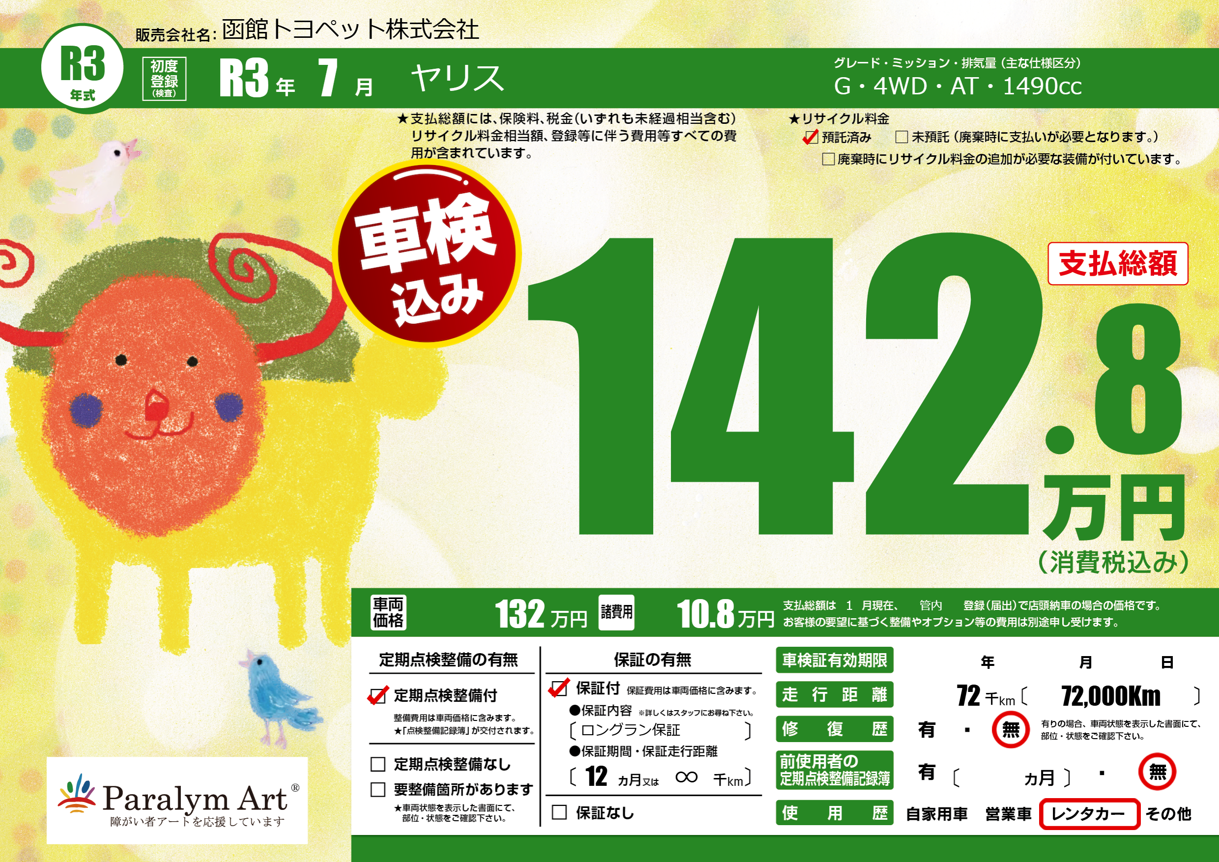 | 走行キロ | 7.2万km | 初年度登録 | R3年7月 |