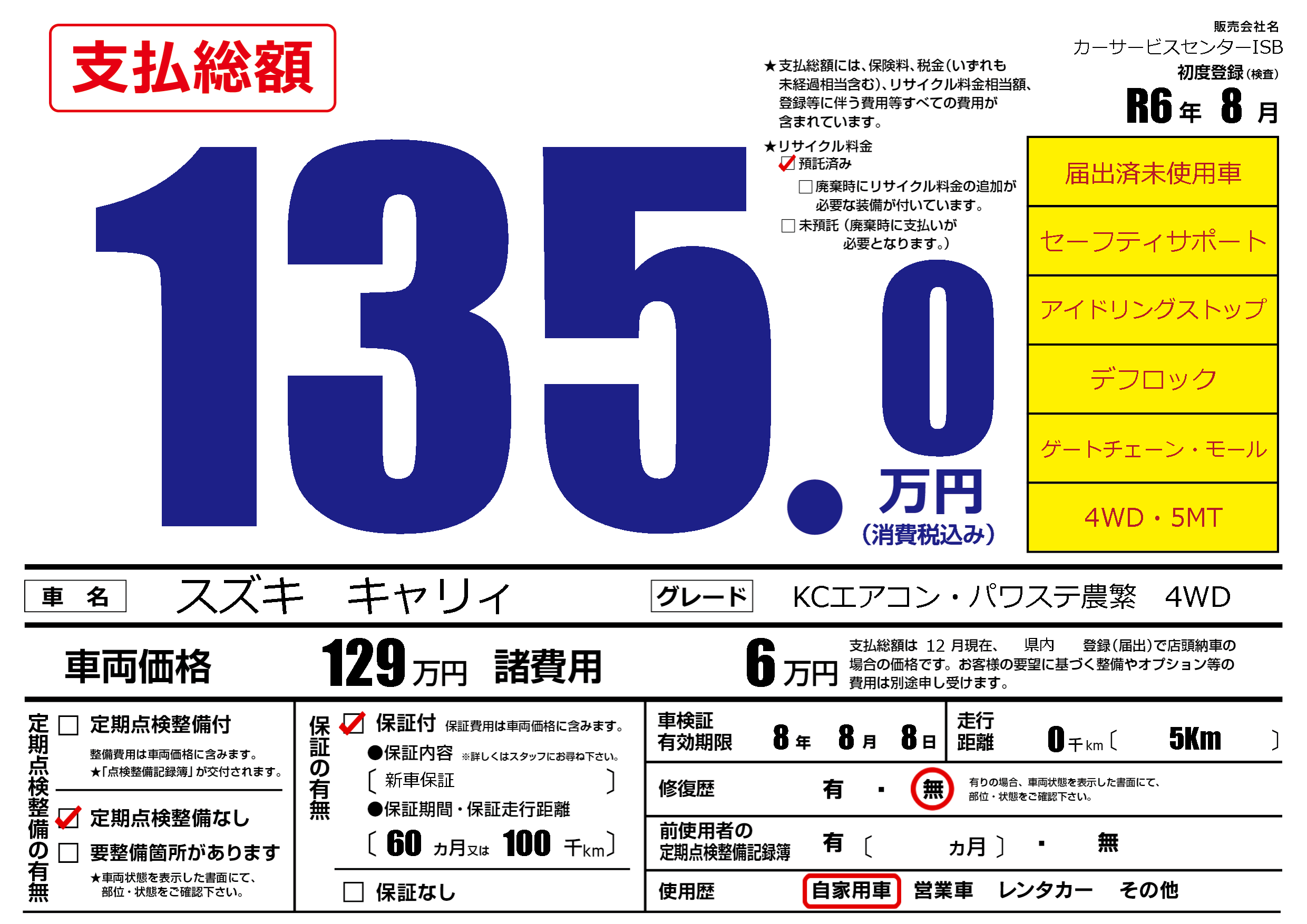 | 走行キロ | - | 初年度登録 | R6年8月 |