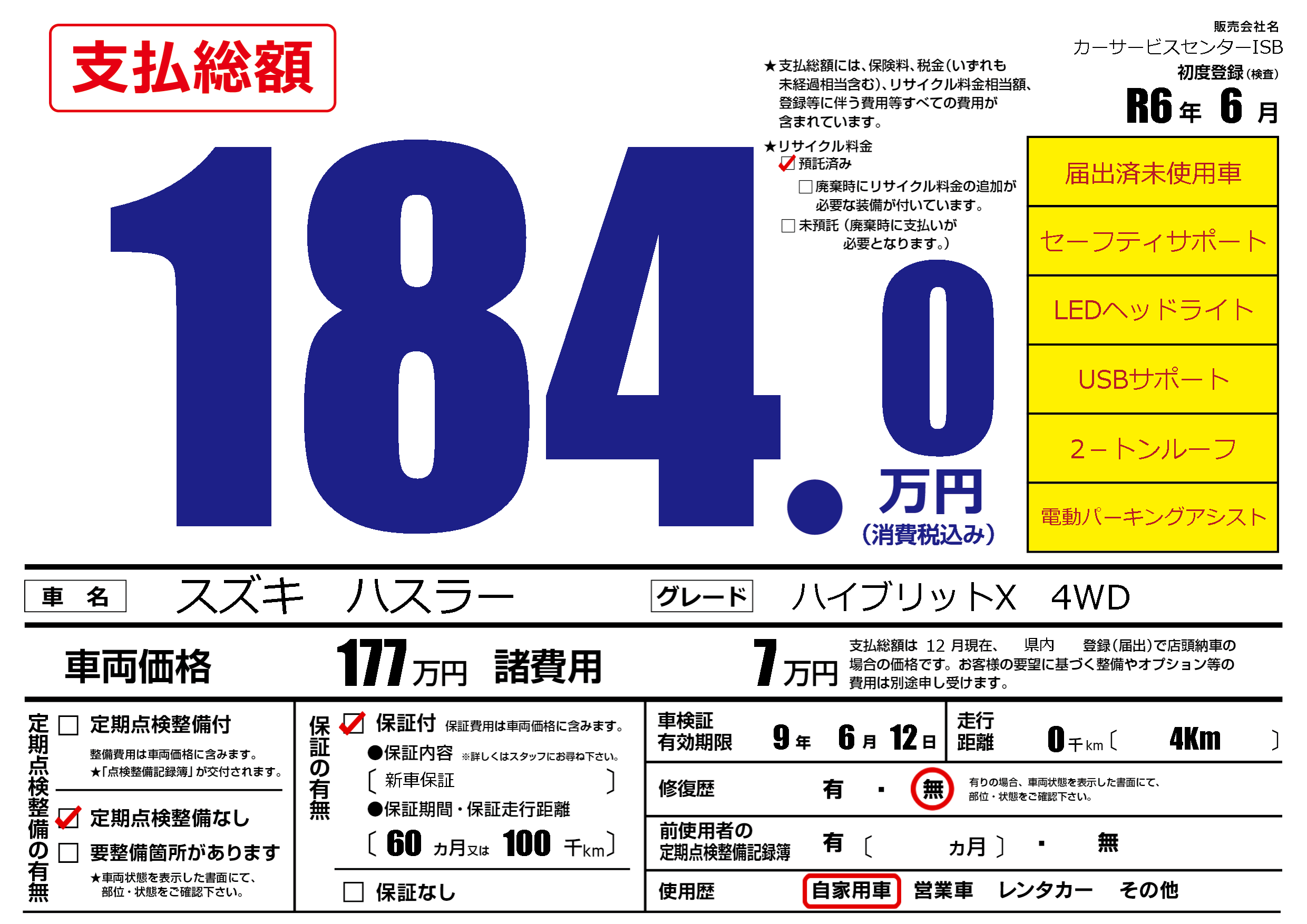 | 走行キロ | - | 初年度登録 | R6年6月 |