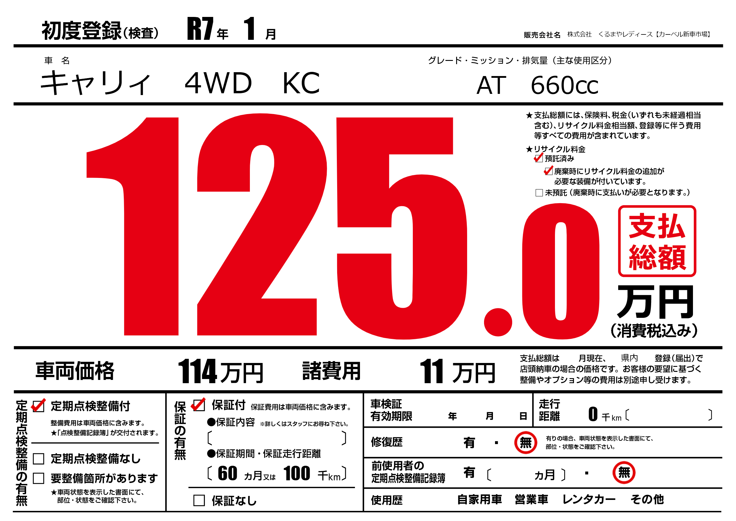 保証付き 保証内容(---) 60ヶ月または(100)千kmまで |