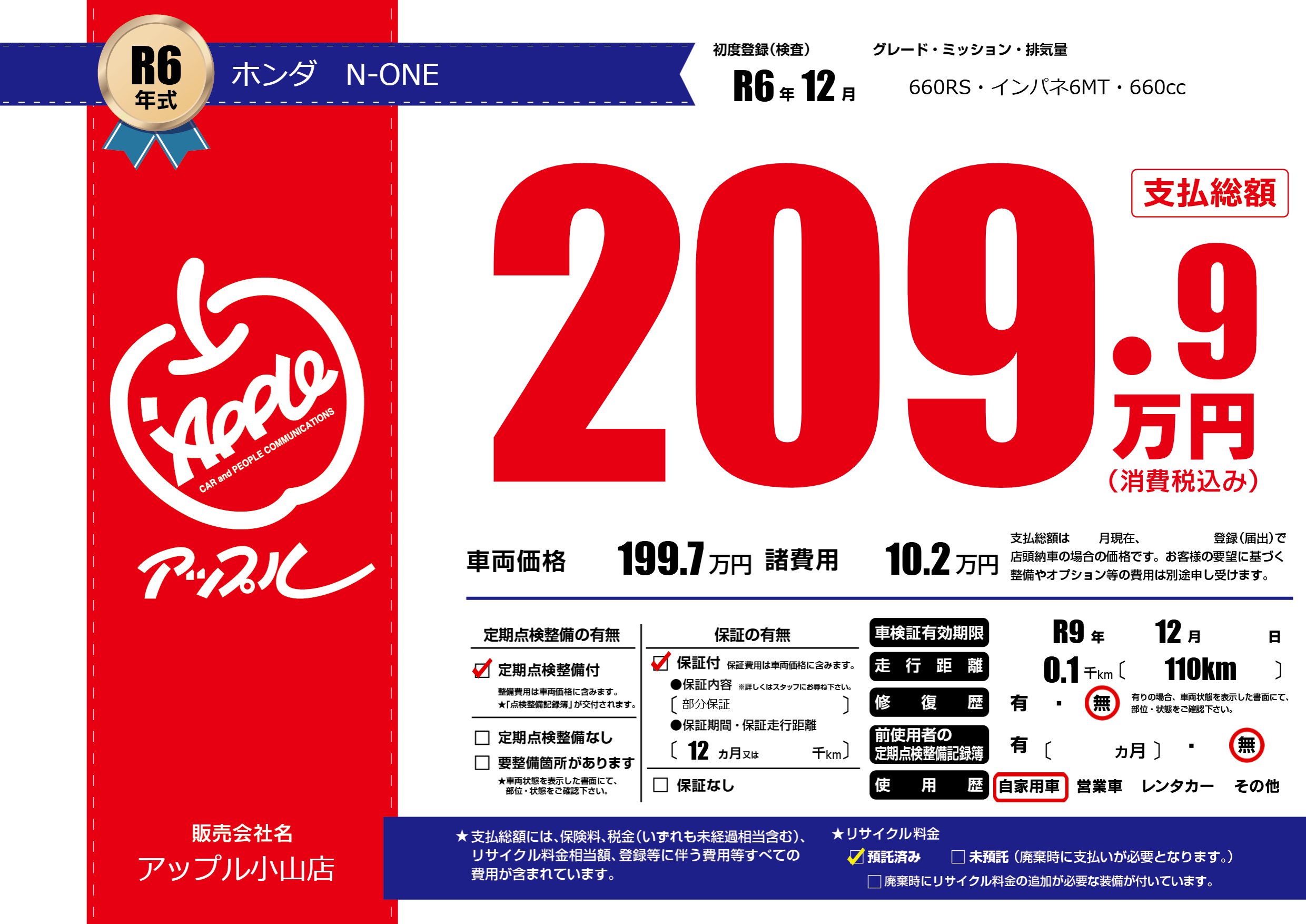 | 車名 | ホンダ N-ONE | グレード ミッション 排気量 |