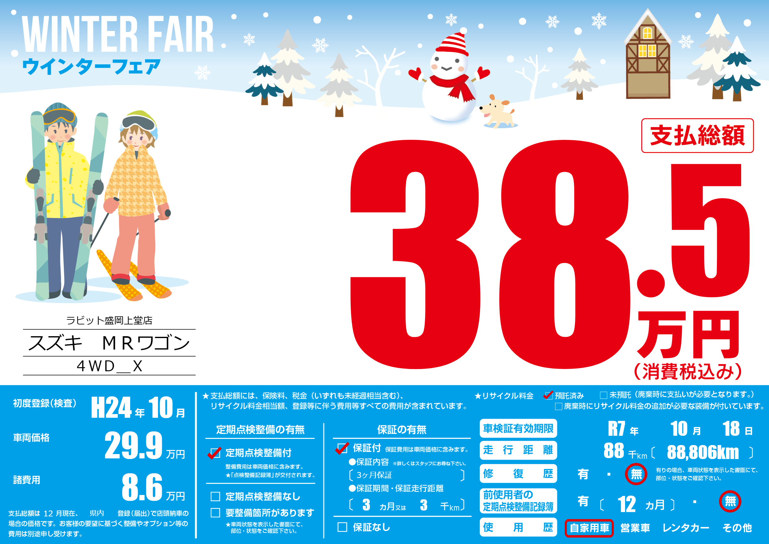 | 車名 | スズキ MRワゴン | グレード ミッション 排気量 |