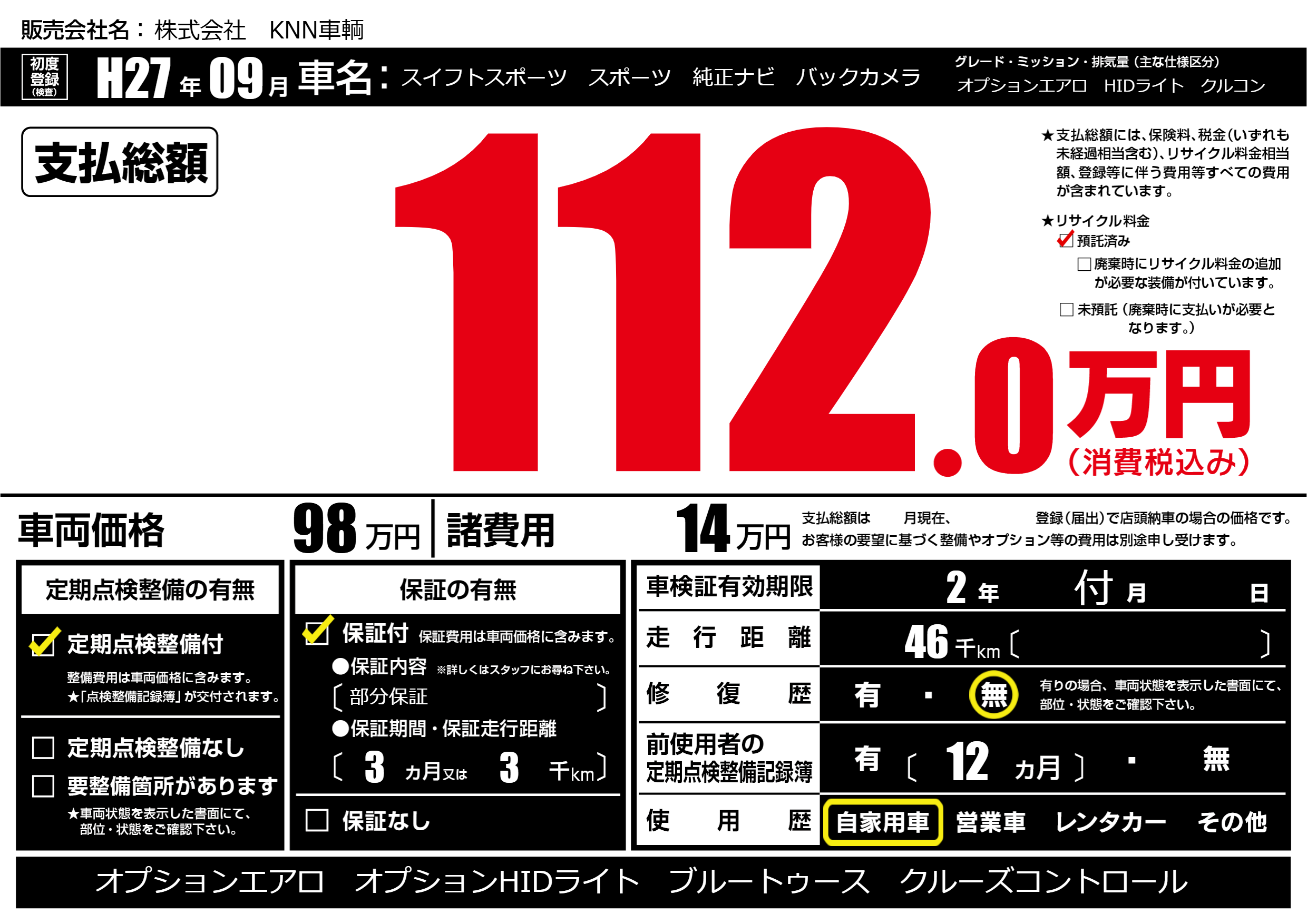 なし | 車検制限 | 2年付月---月 |