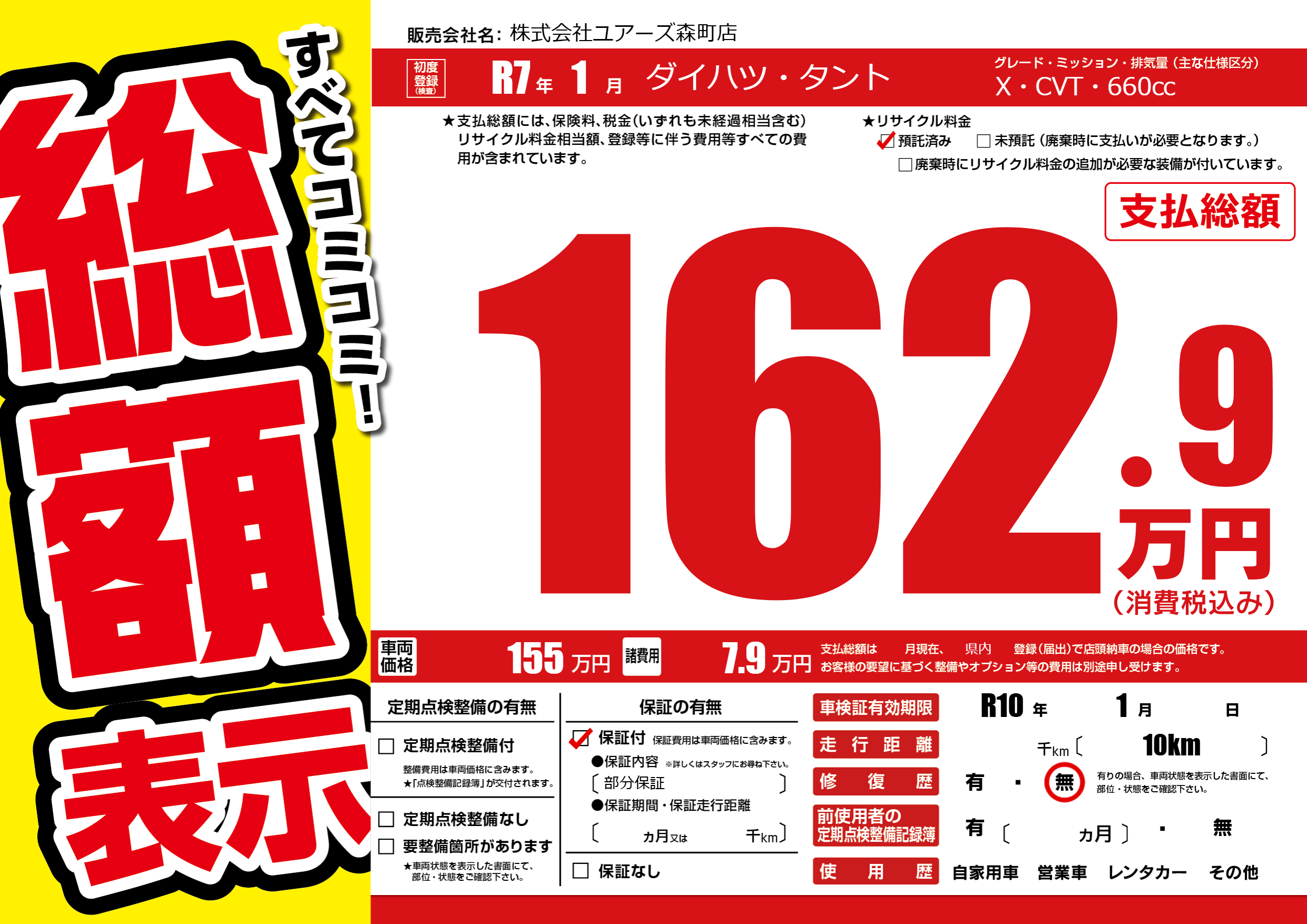 | 車名 | ダイハツ・タント | グレード ミッション 排気量 |