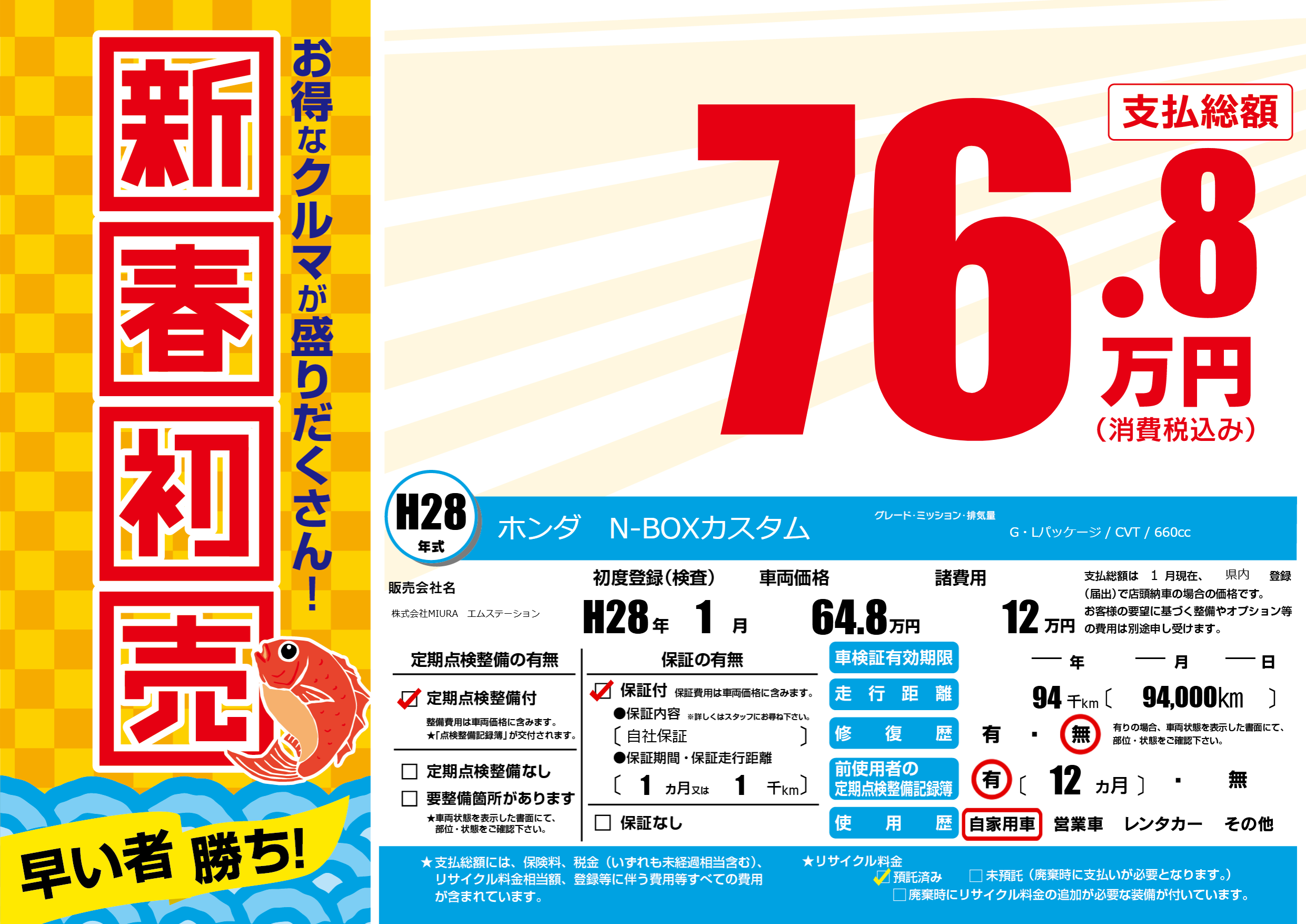 | 初年度登録 | H28年1月 | ||