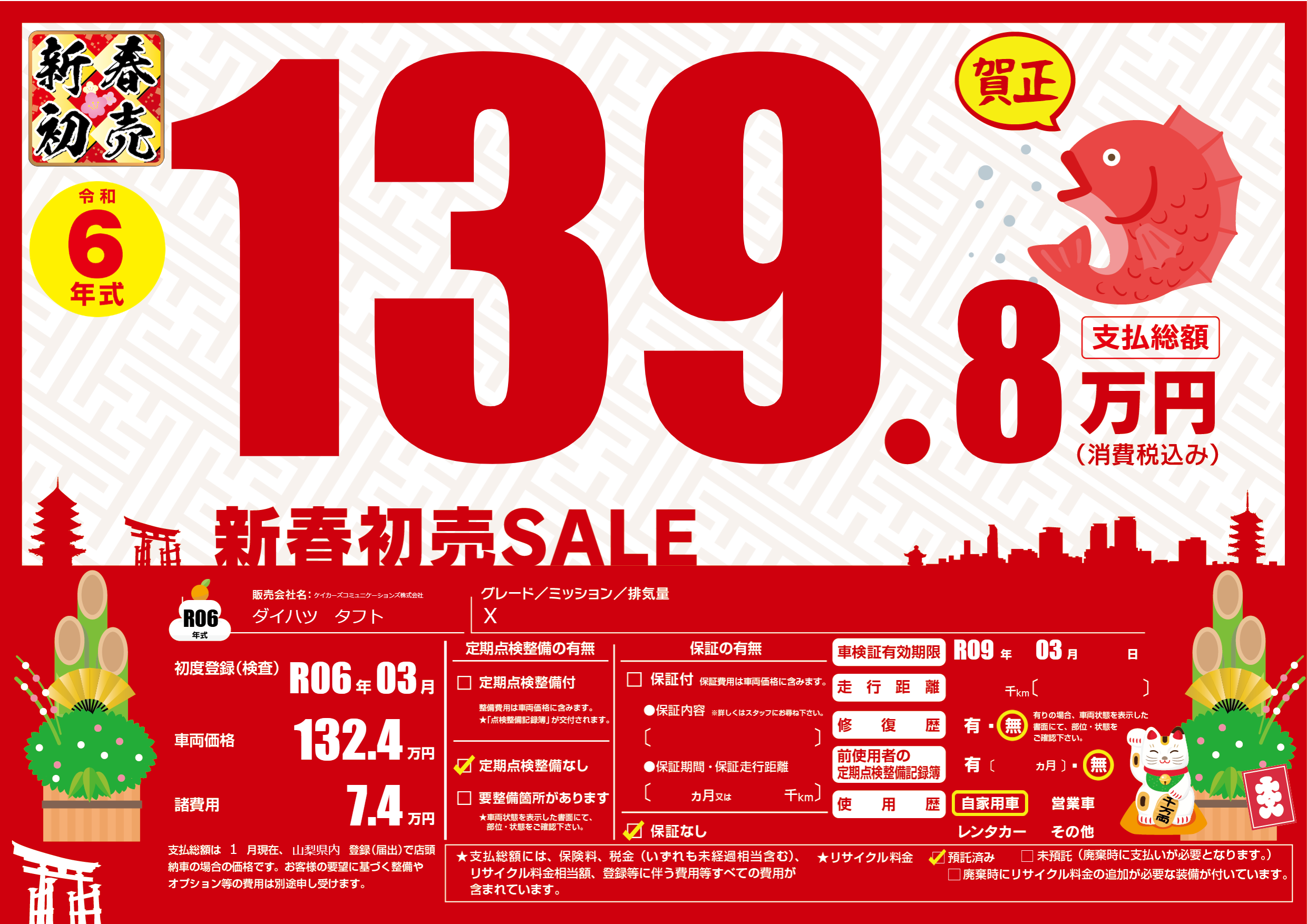 | 走行キロ | - | 初年度登録 | R06年03月 |