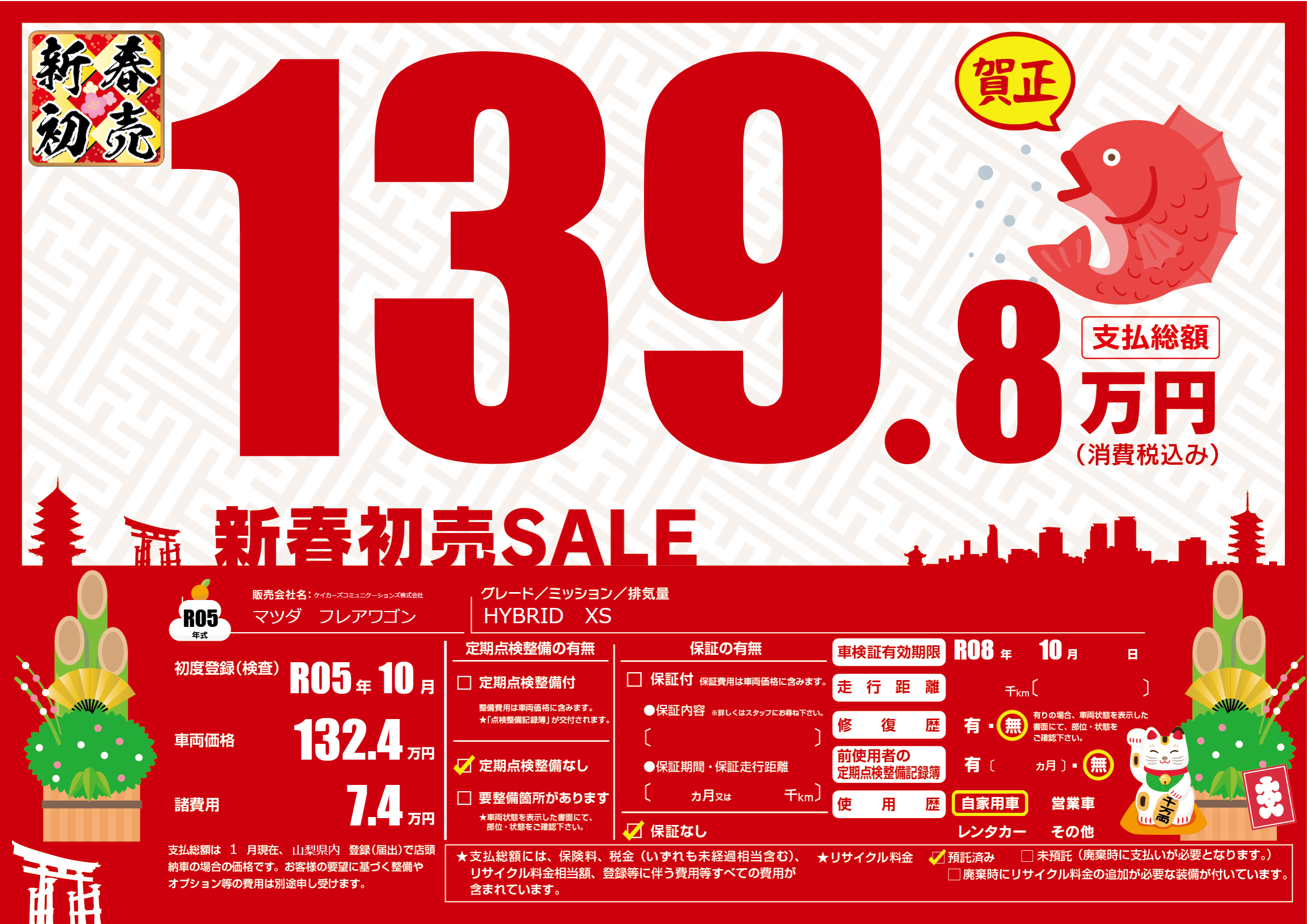 | 走行キロ | - | 初年度登録 | R05年10月 |