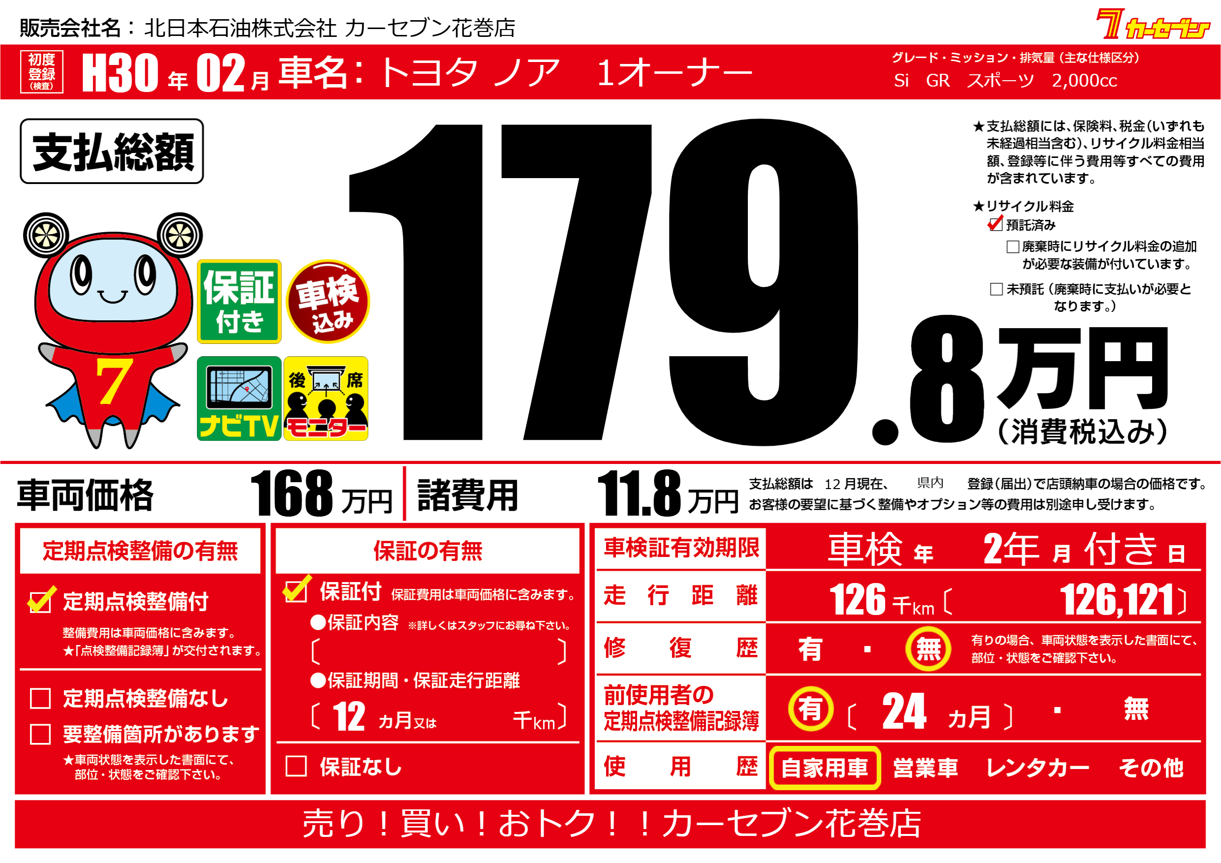 | 走行キロ | 12.6万km | ||
