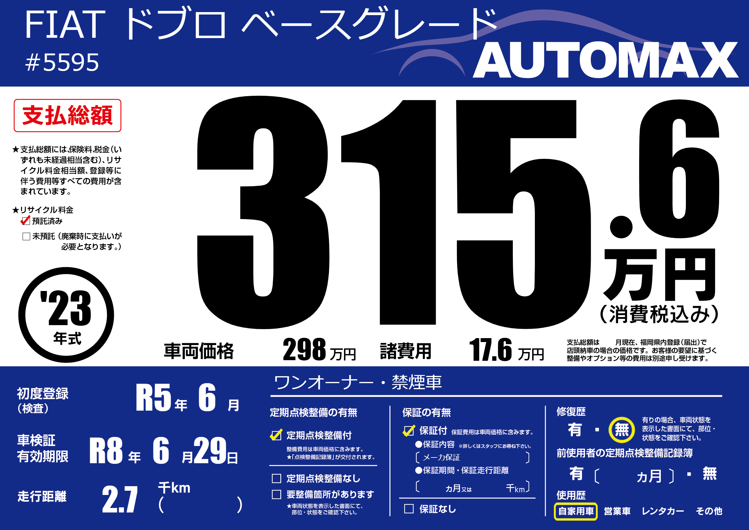 | 車名 | FIAT ドブロ ベースグレード | グレード ミッション 排気量 |