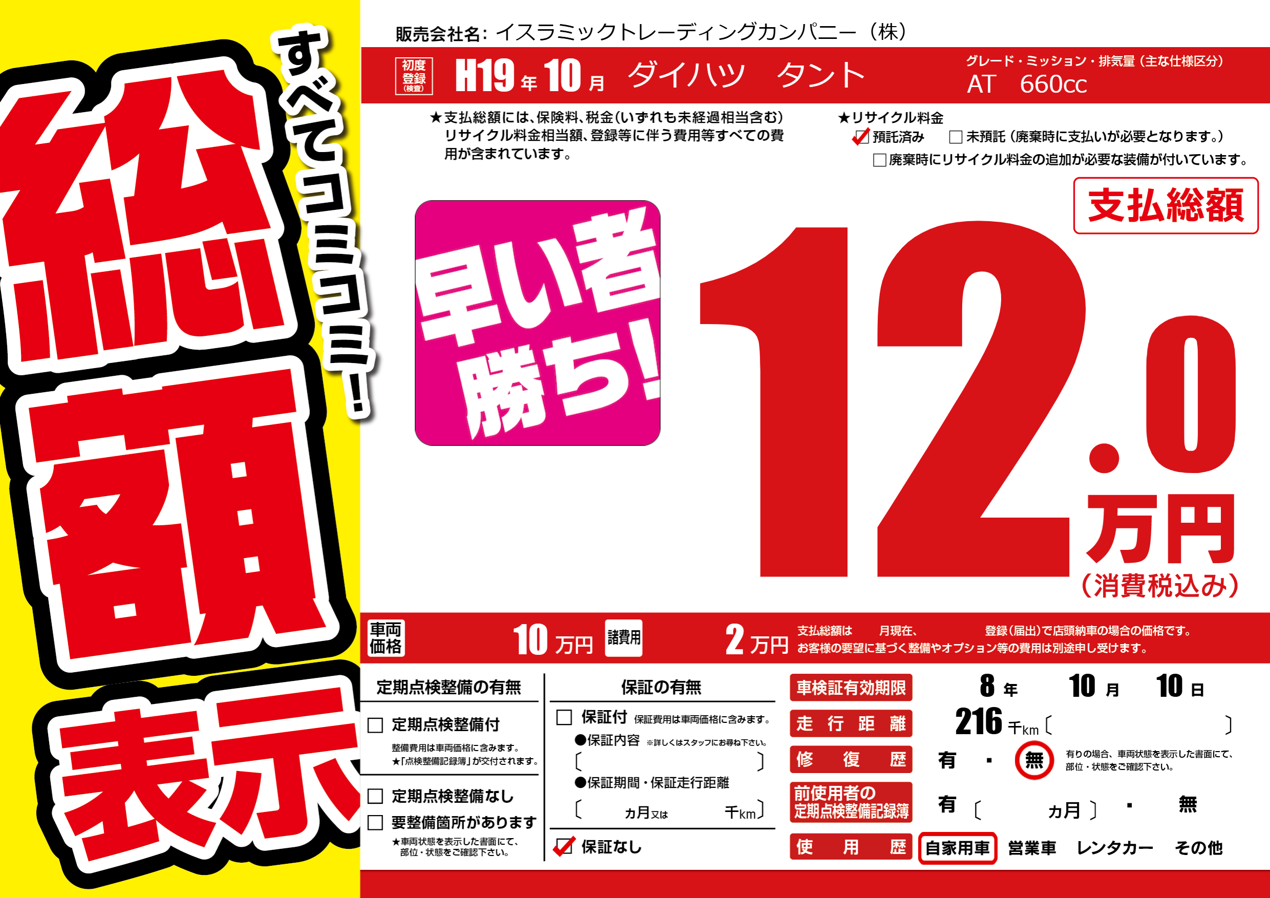 | 車検制限 | 8年 10月 10日 | ||