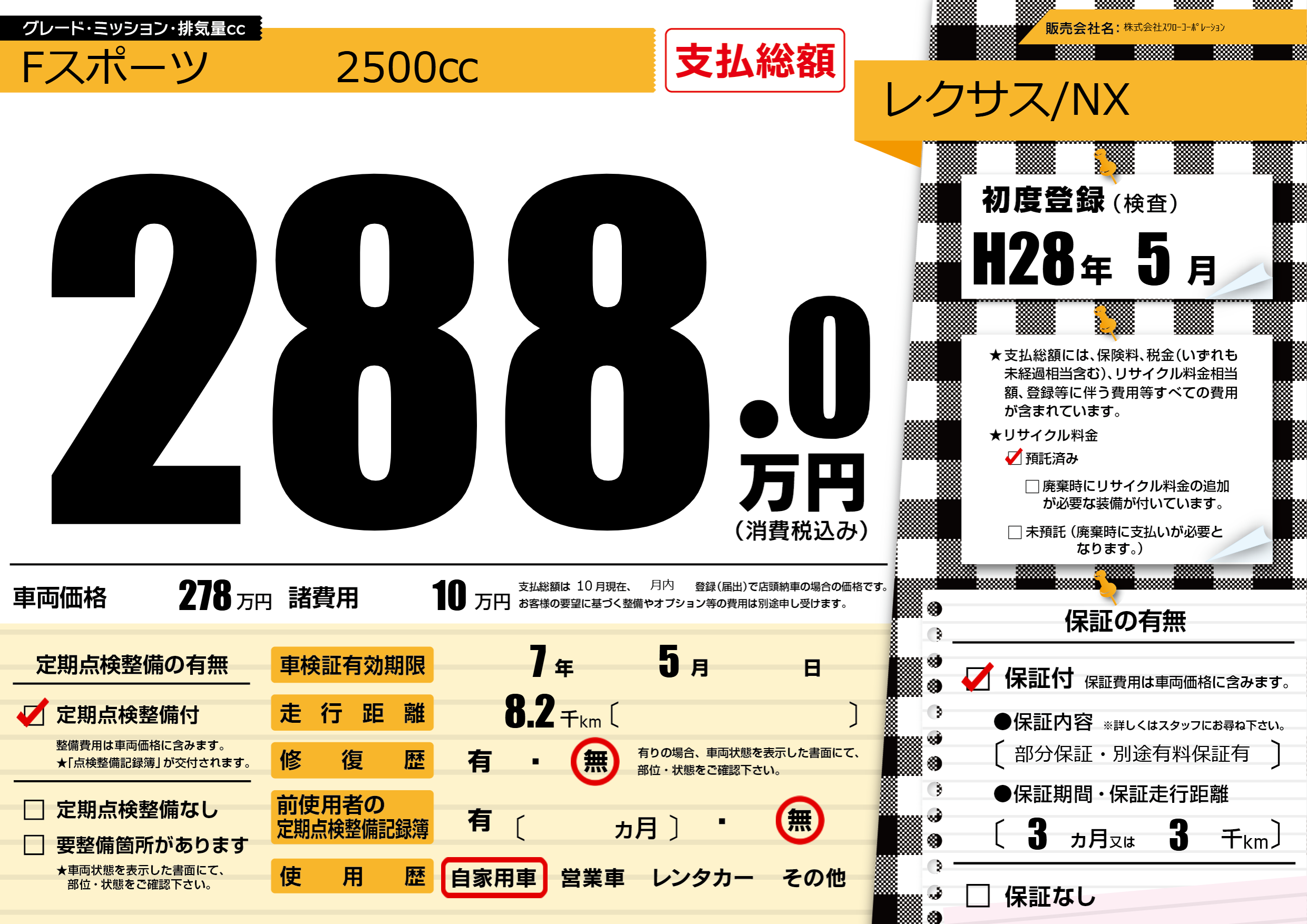 | 定期点検整備 | 定期点検整備あり | ||