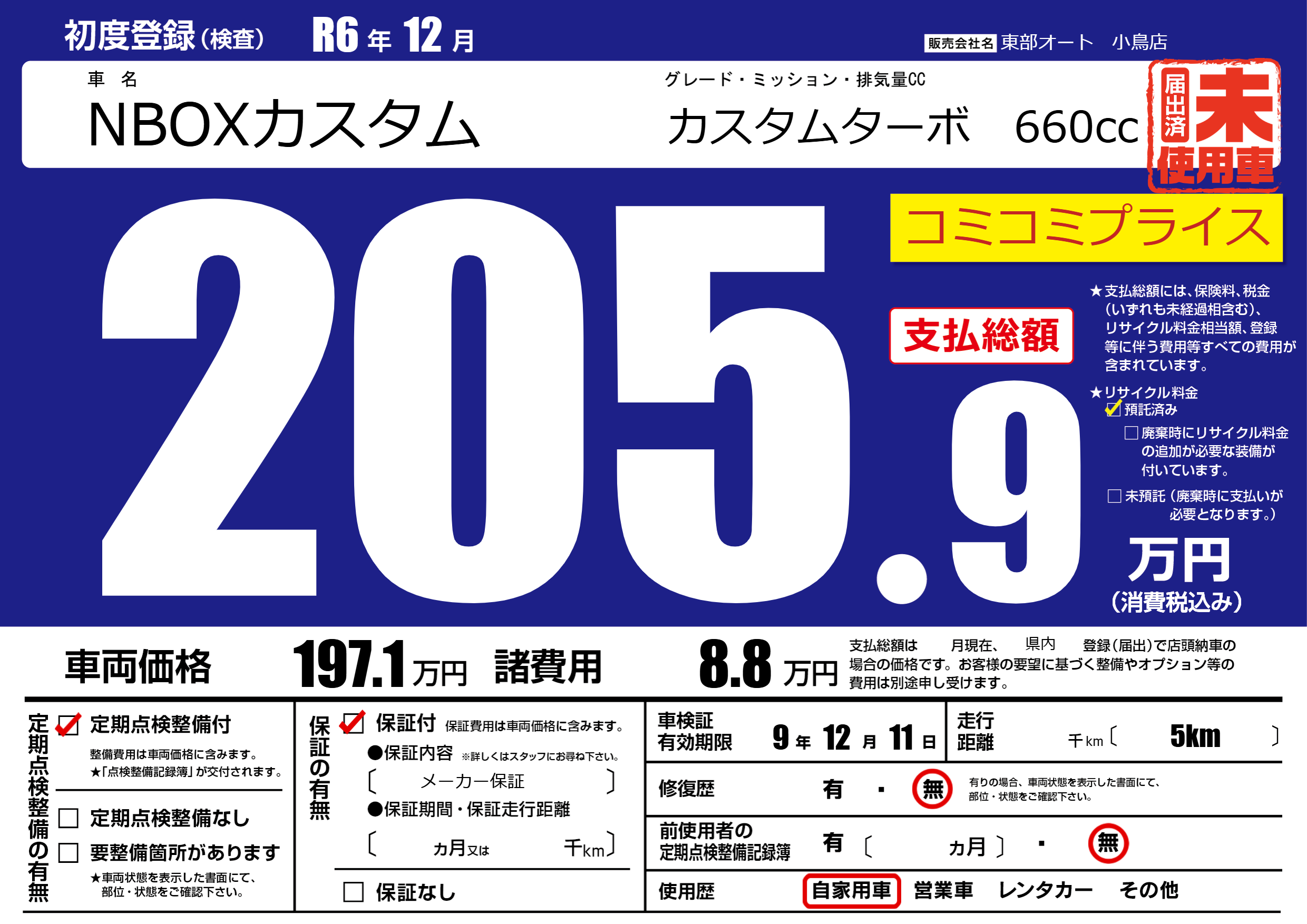 | 走行キロ | - | 初年度登録 | R6年12月 |