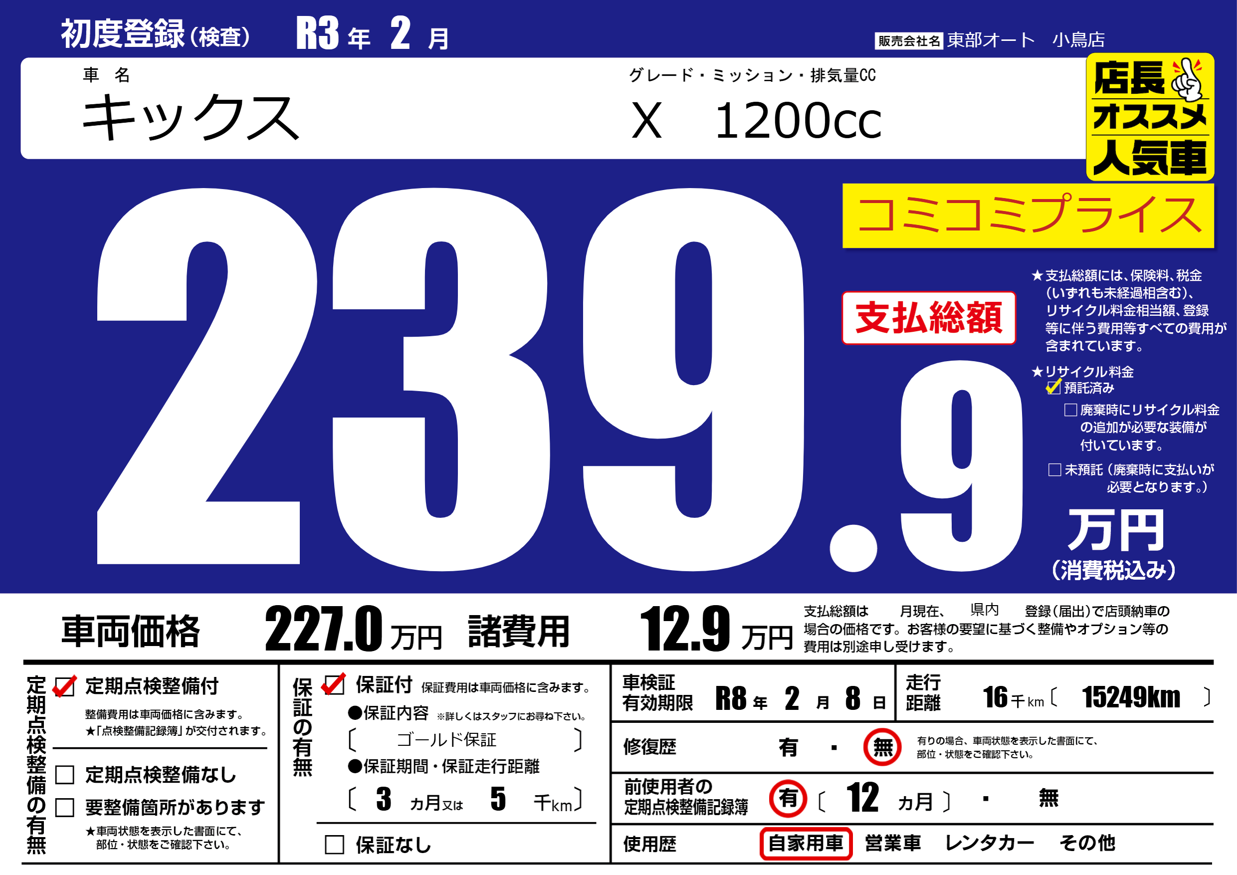 | 定期点検整備 | 定期点検整備あり | ||