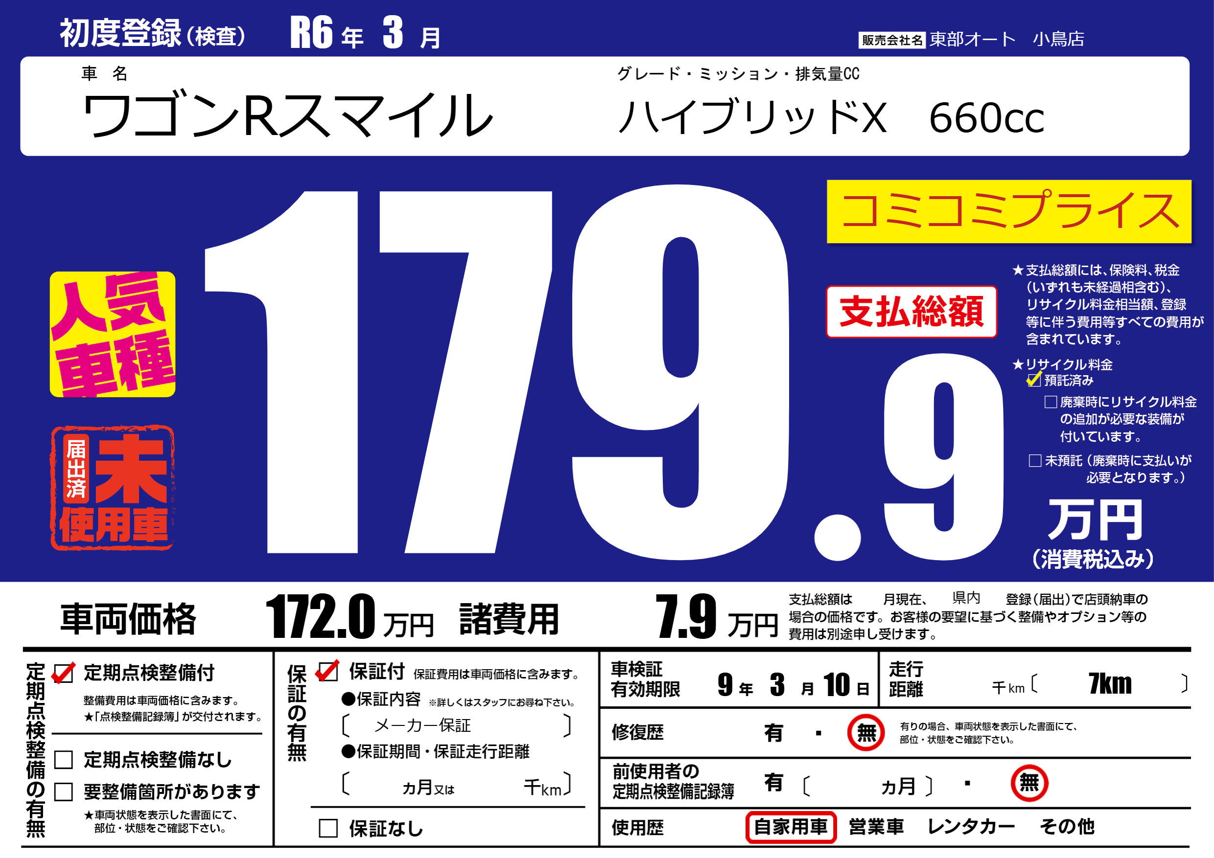 | 車検制限 | 9年 3月 10日 | ||