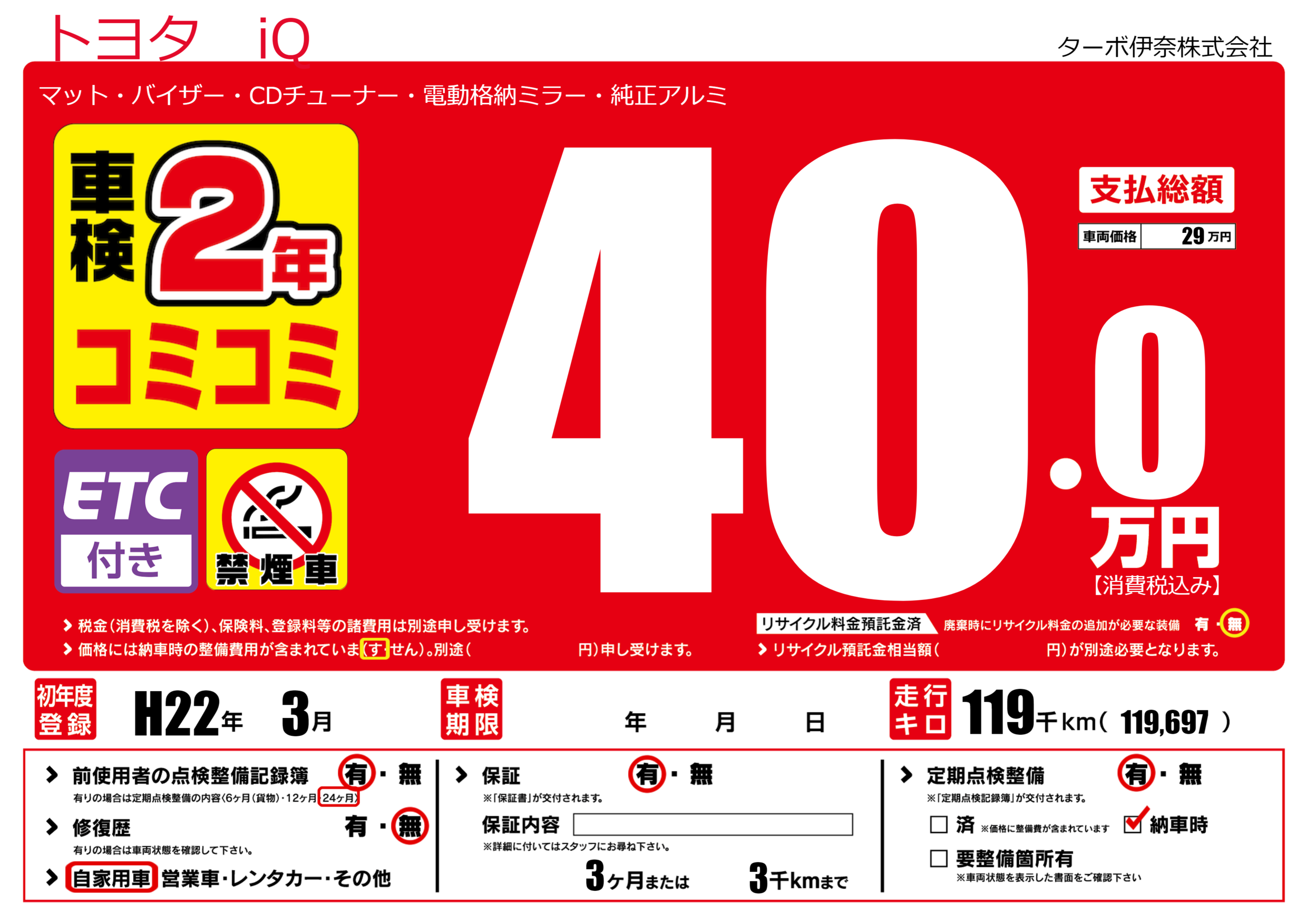 | 初年度登録 | H22年3月 | ||