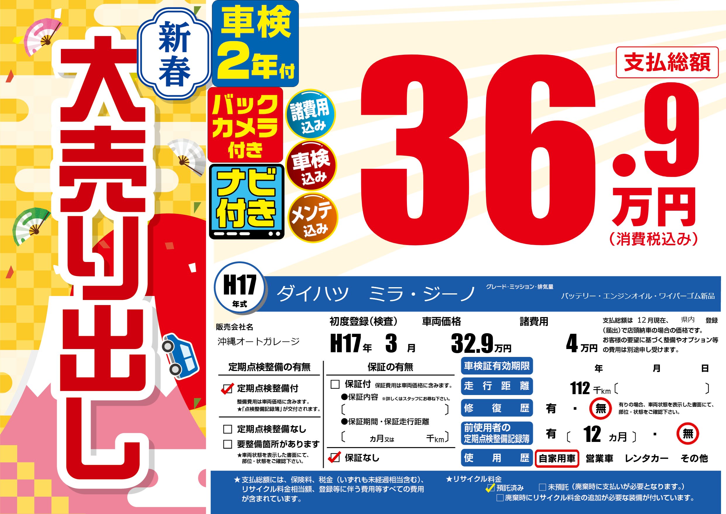 | 車名 | ダイハツ ミラ・ジーノ | グレード ミッション 排気量 |