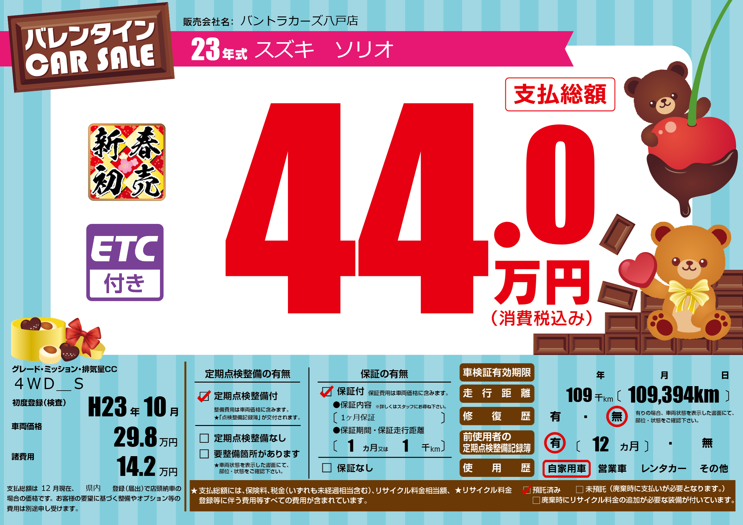 | 走行キロ | 10.9万km | 初年度登録 | H23年10月 |