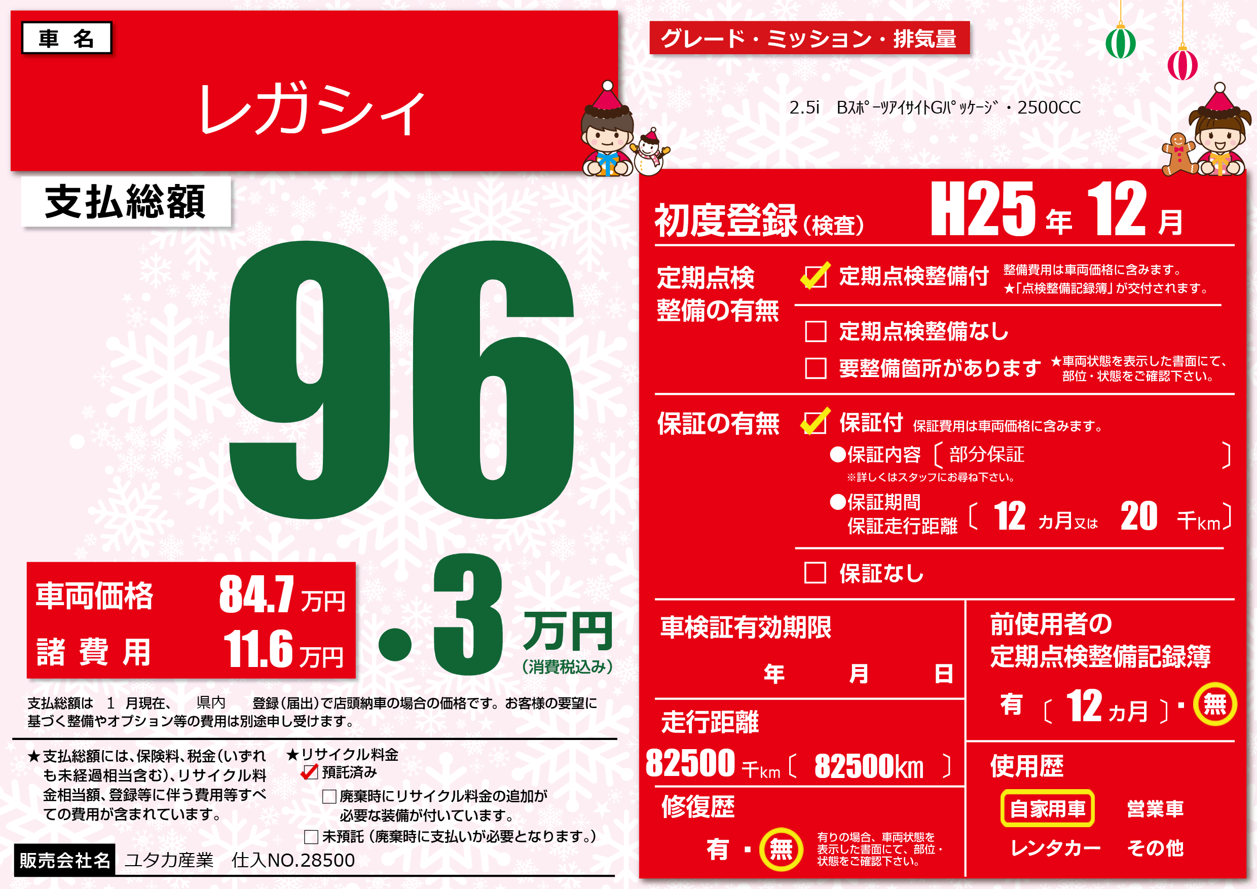 | 車名 | レガシィ | グレード ミッション 排気量 |