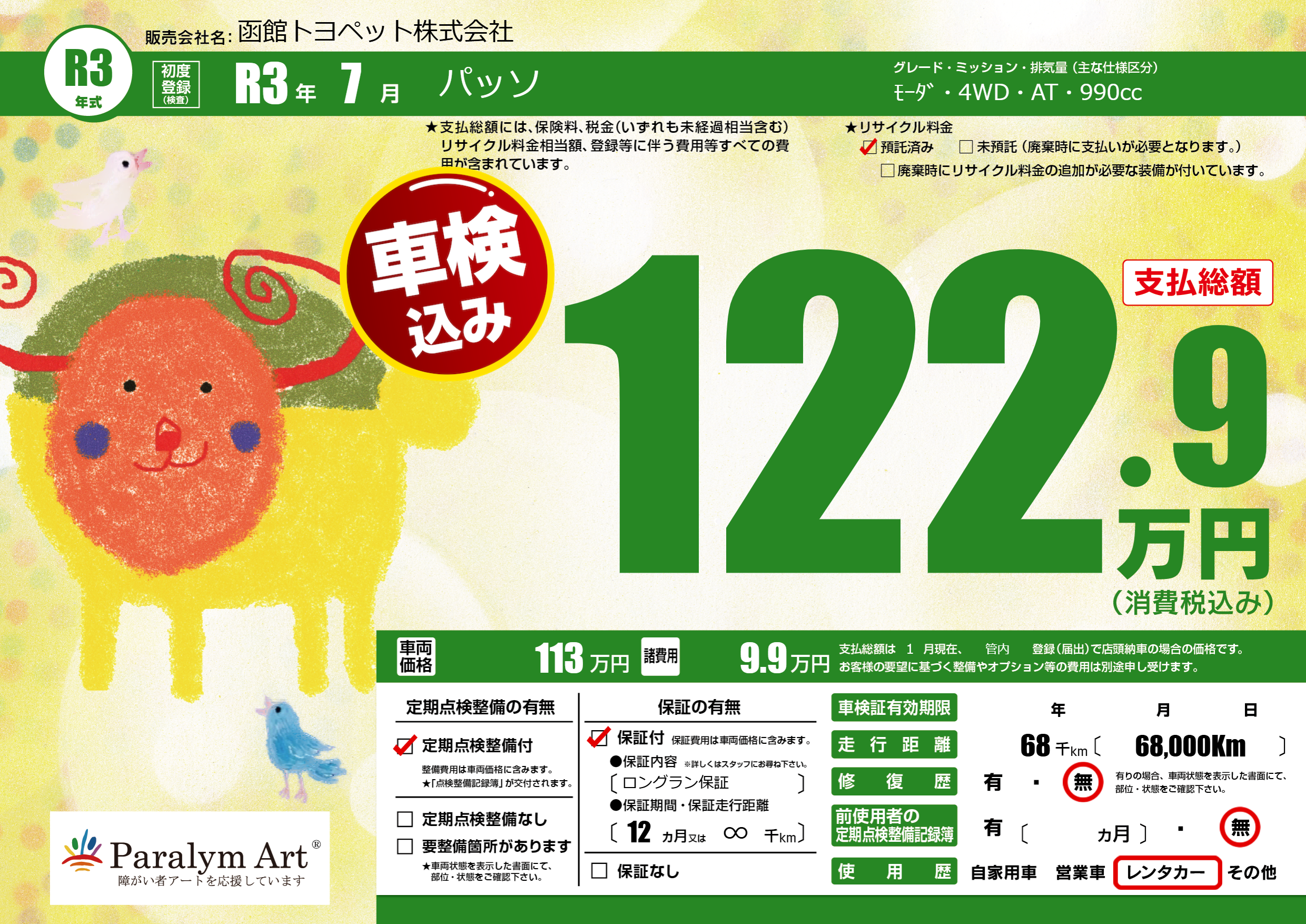 | 走行キロ | 6.8万km | 初年度登録 | R3年7月 |