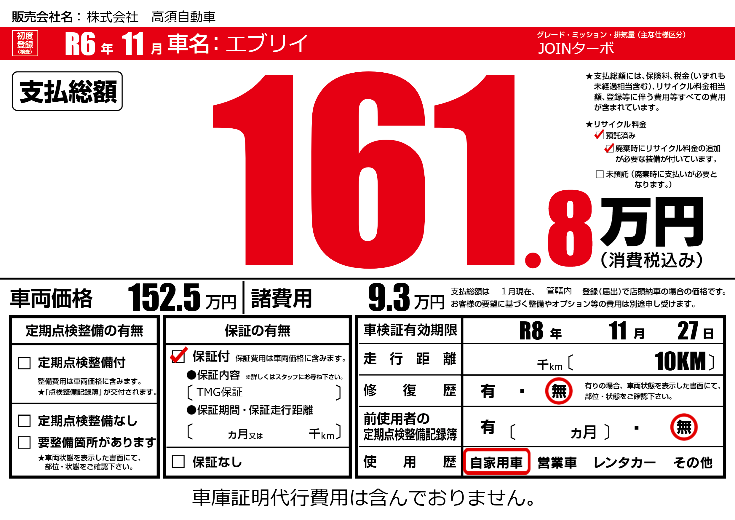 なし | 車検制限 | R8年11月27月 |