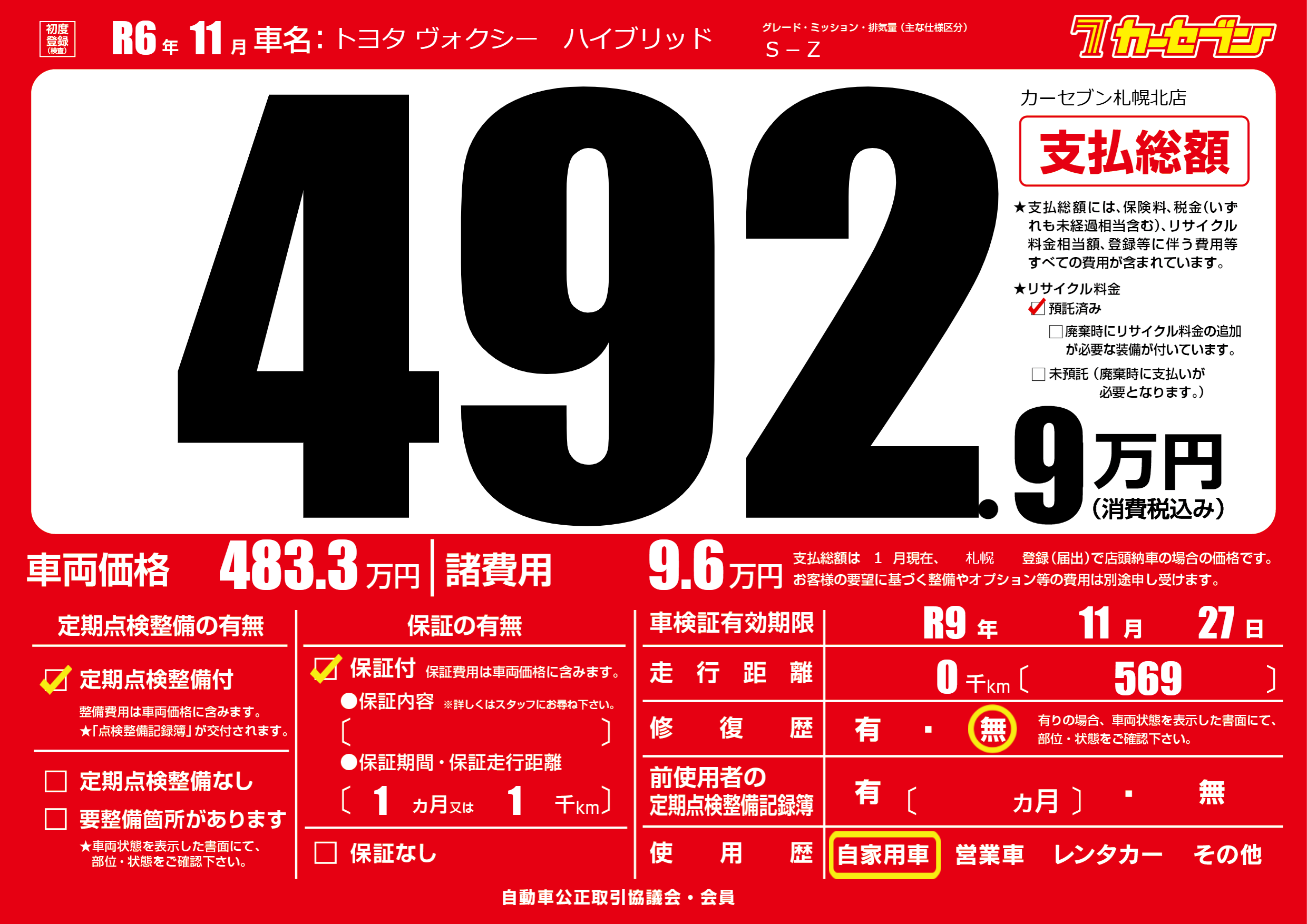 なし | 車検制限 | R9年11月27月 |