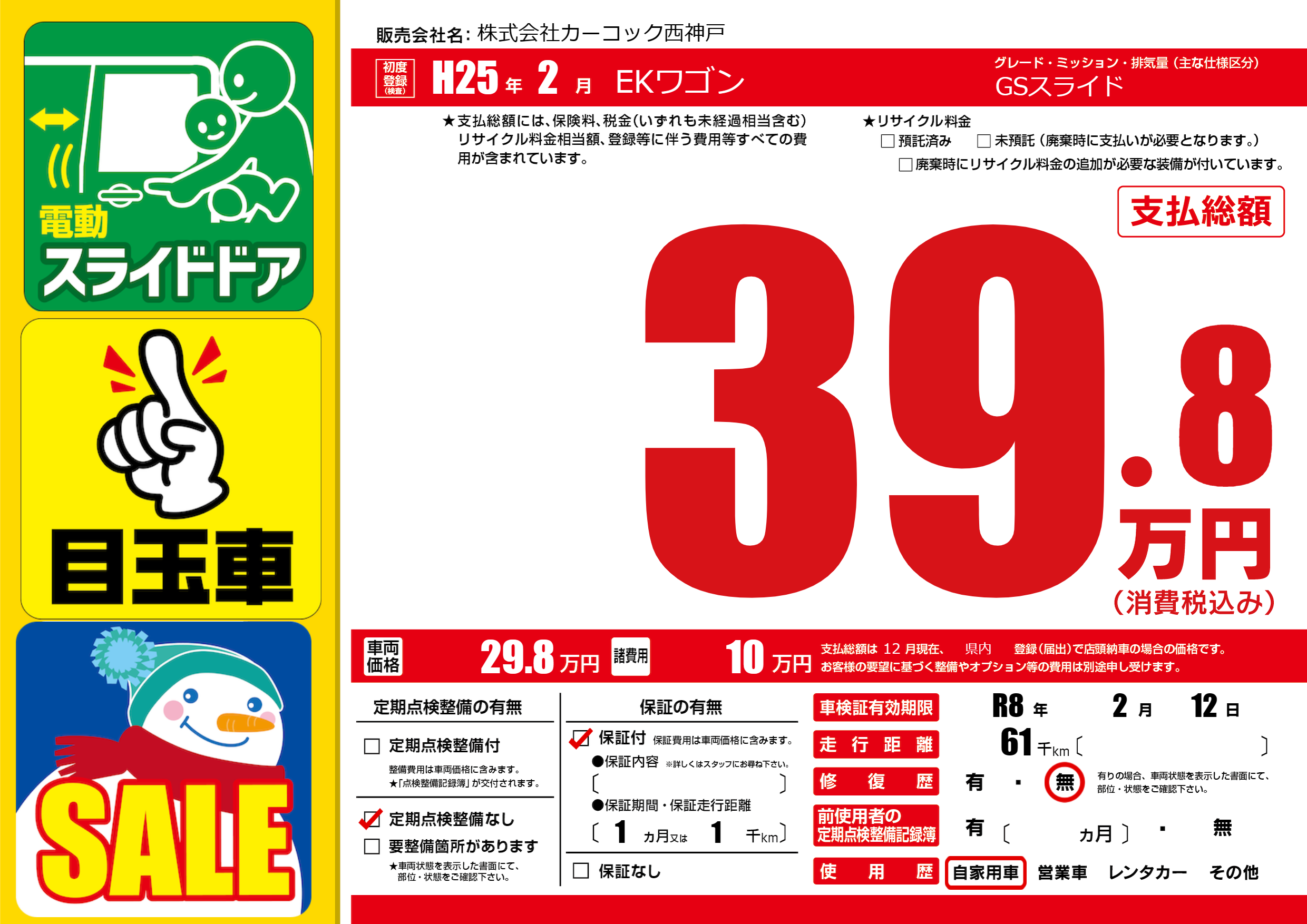 | 走行キロ | 6.1万km | 初年度登録 | H25年2月 |