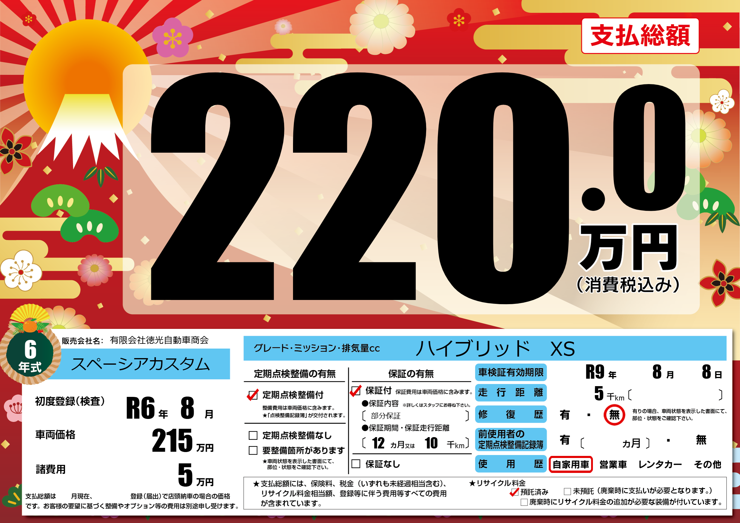 | 走行キロ | 0.5万km | 初年度登録 | R6年8月 |