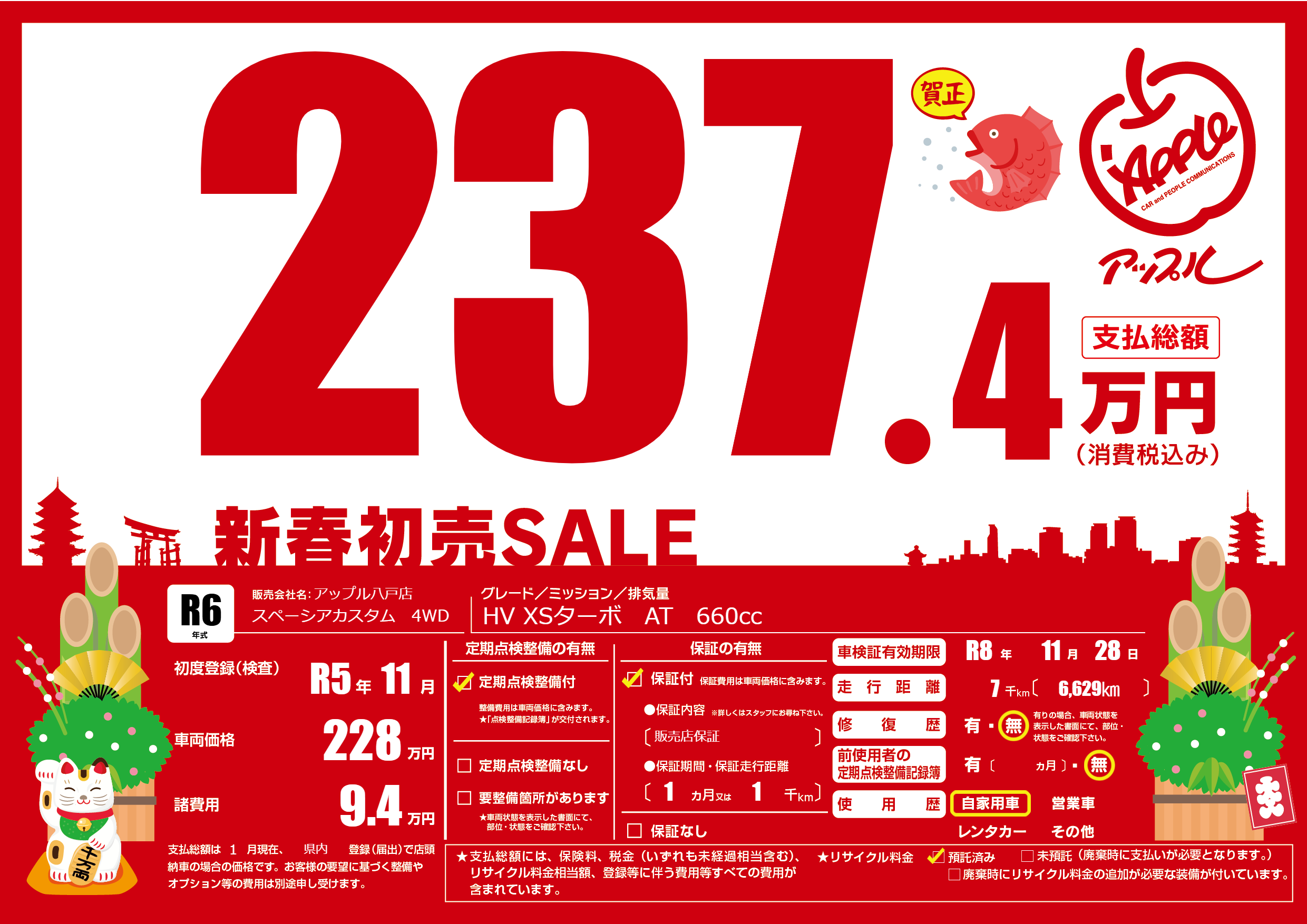 | 走行キロ | 0.7万km | 初年度登録 | R5年11月 |