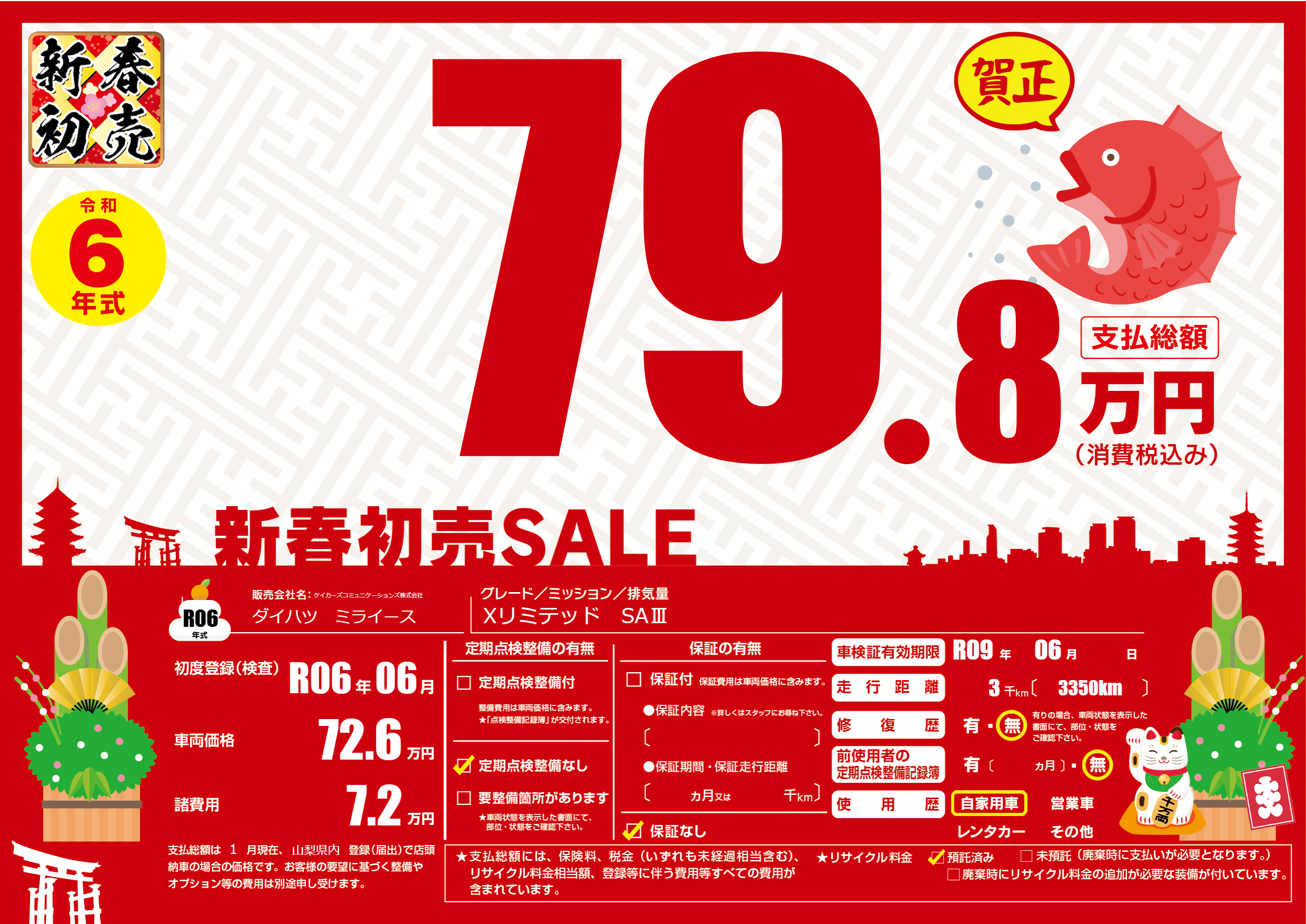 | 走行キロ | 0.3万km | 初年度登録 | R06年06月 |