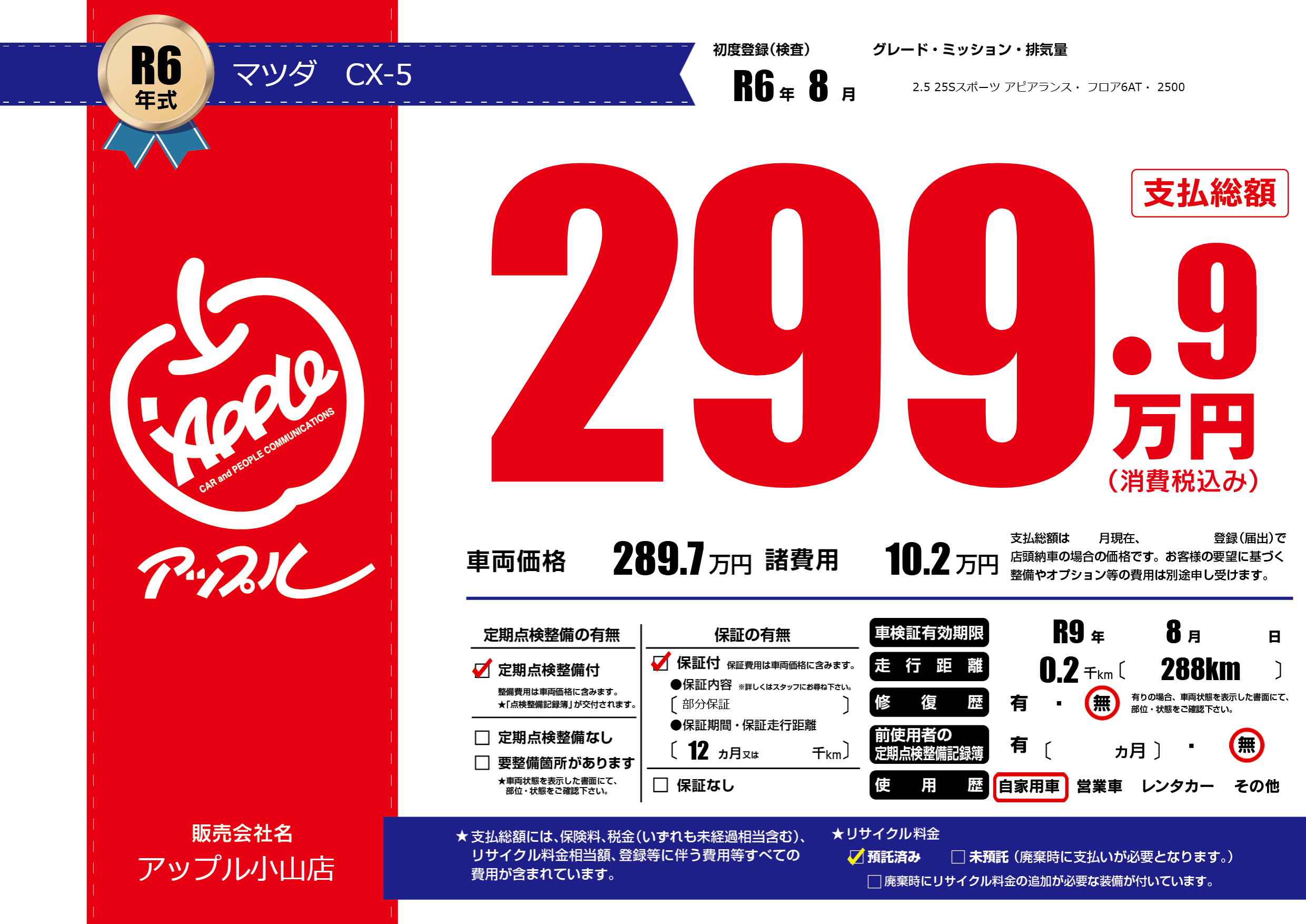 | 車名 | マツダ CX-5 | グレード ミッション 排気量 |