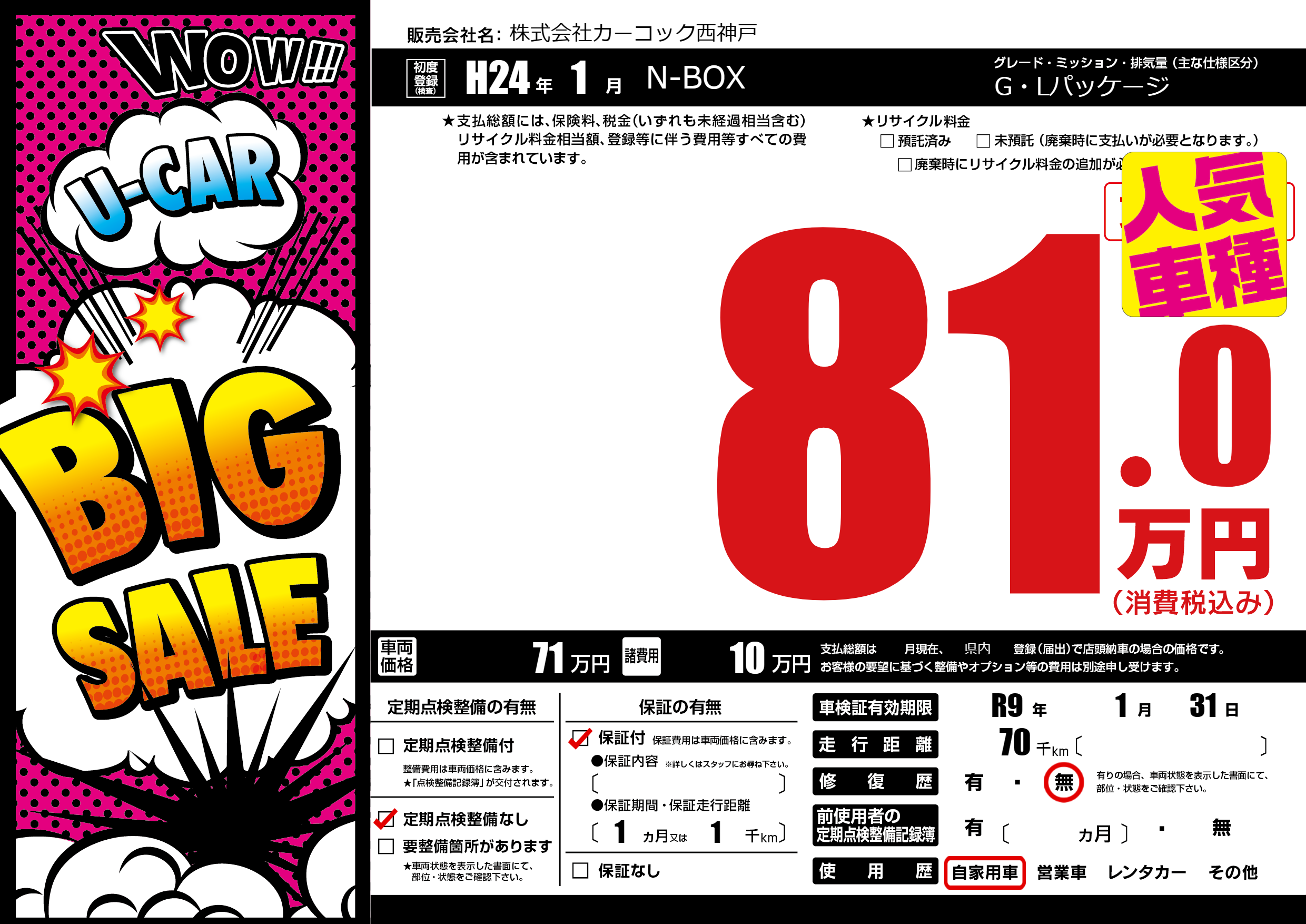 なし | 車検制限 | R9年1月31月 |