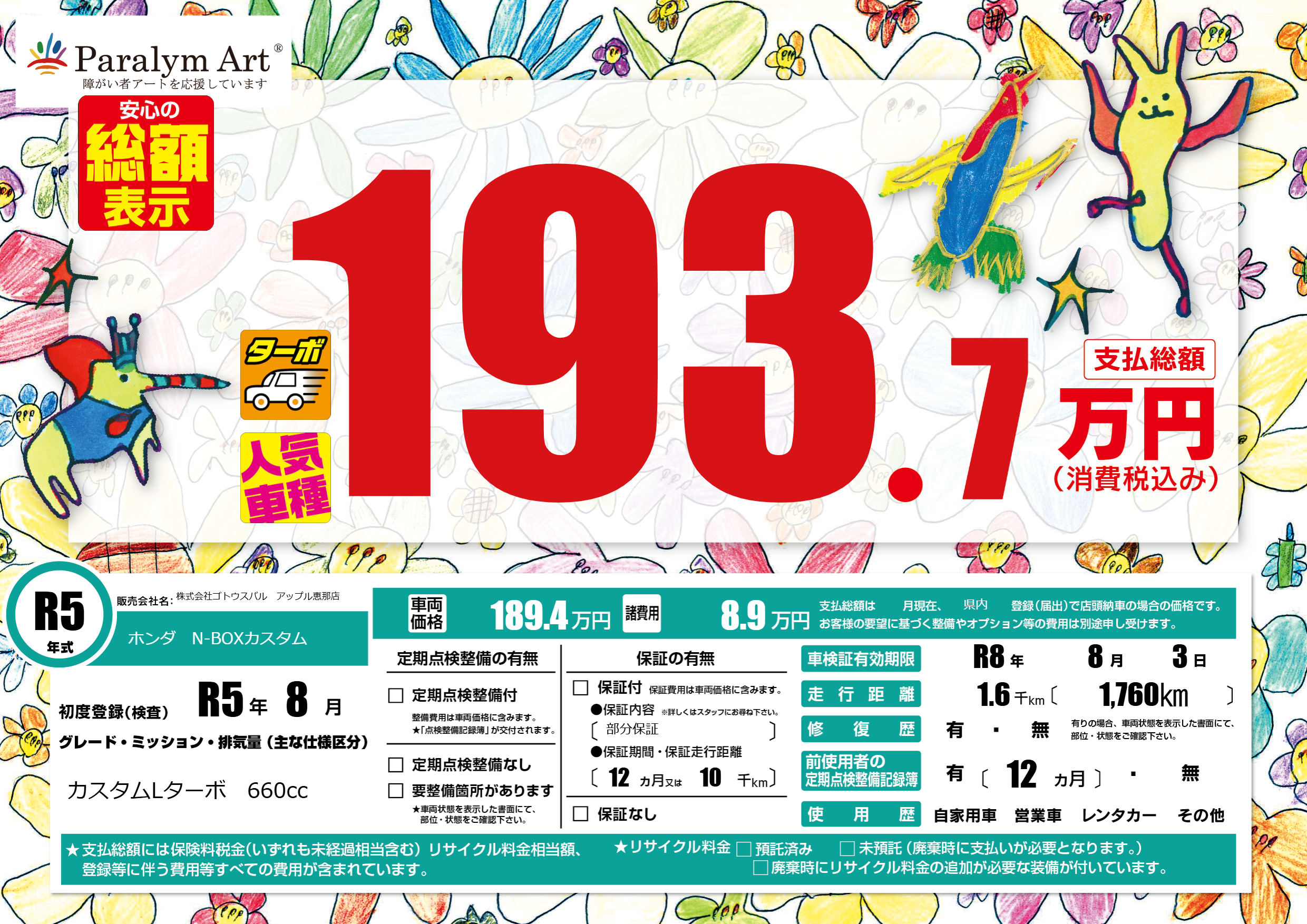 なし | 車検制限 | R8年8月3月 |