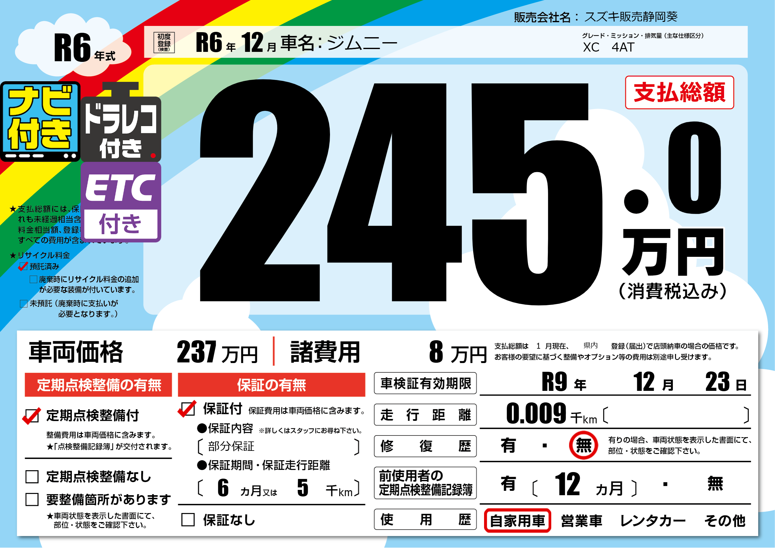 | 車名 | ジムニー | グレード ミッション 排気量 |