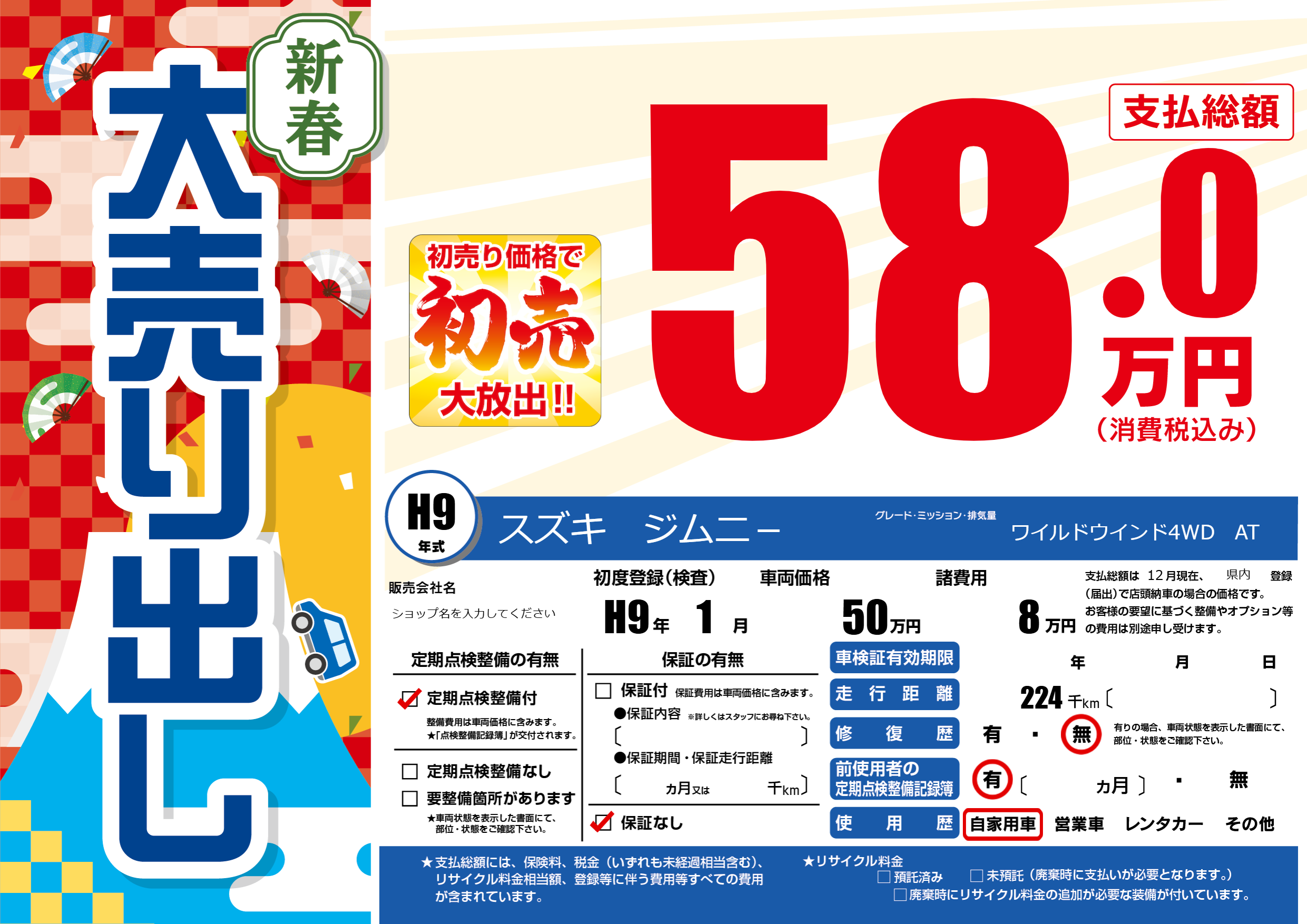 | 走行キロ | 22.4万km | 初年度登録 | H9年1月 |