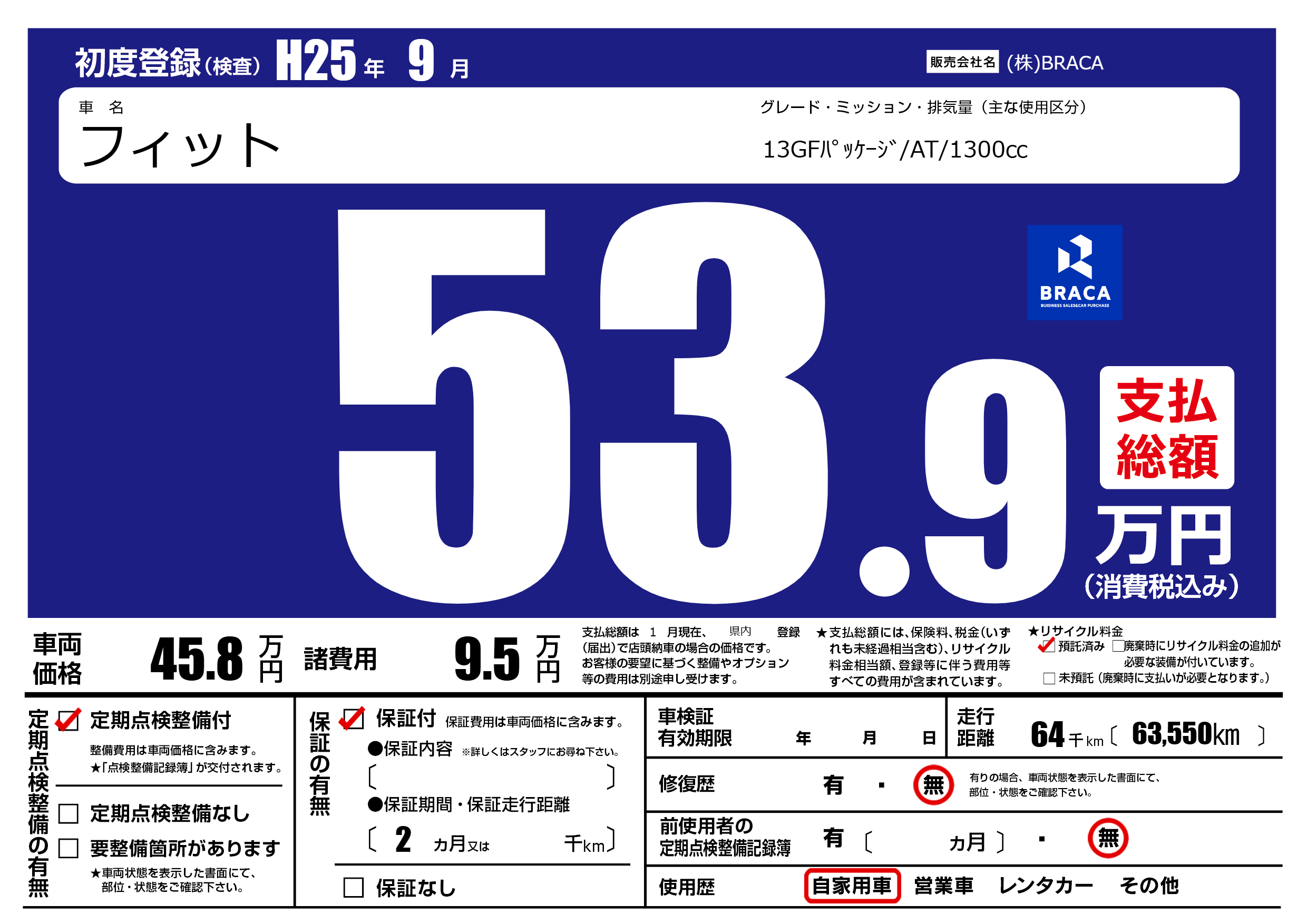 | 定期点検整備 | 定期点検整備あり | ||