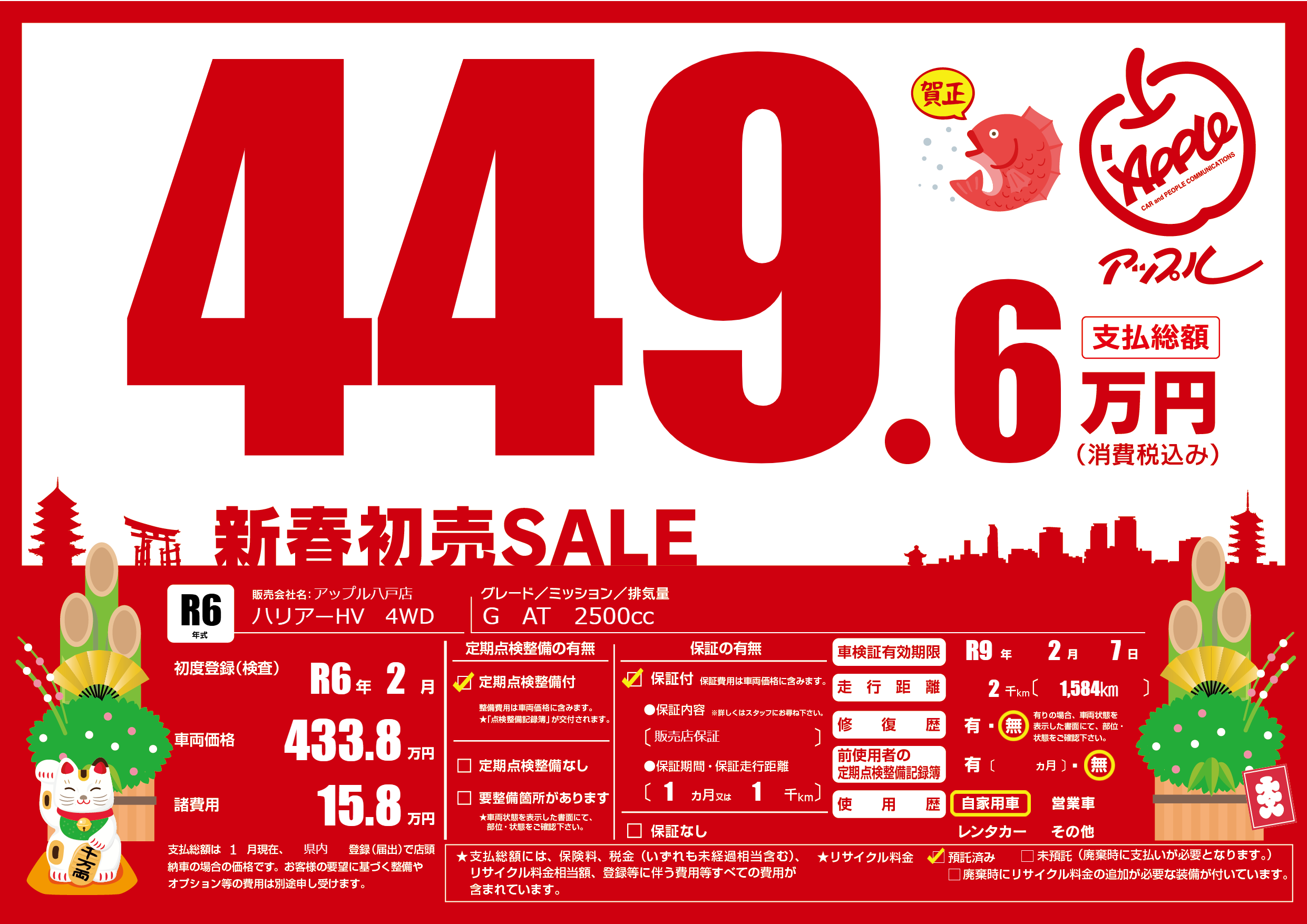 | 走行キロ | 0.2万km | 初年度登録 | R6年2月 |