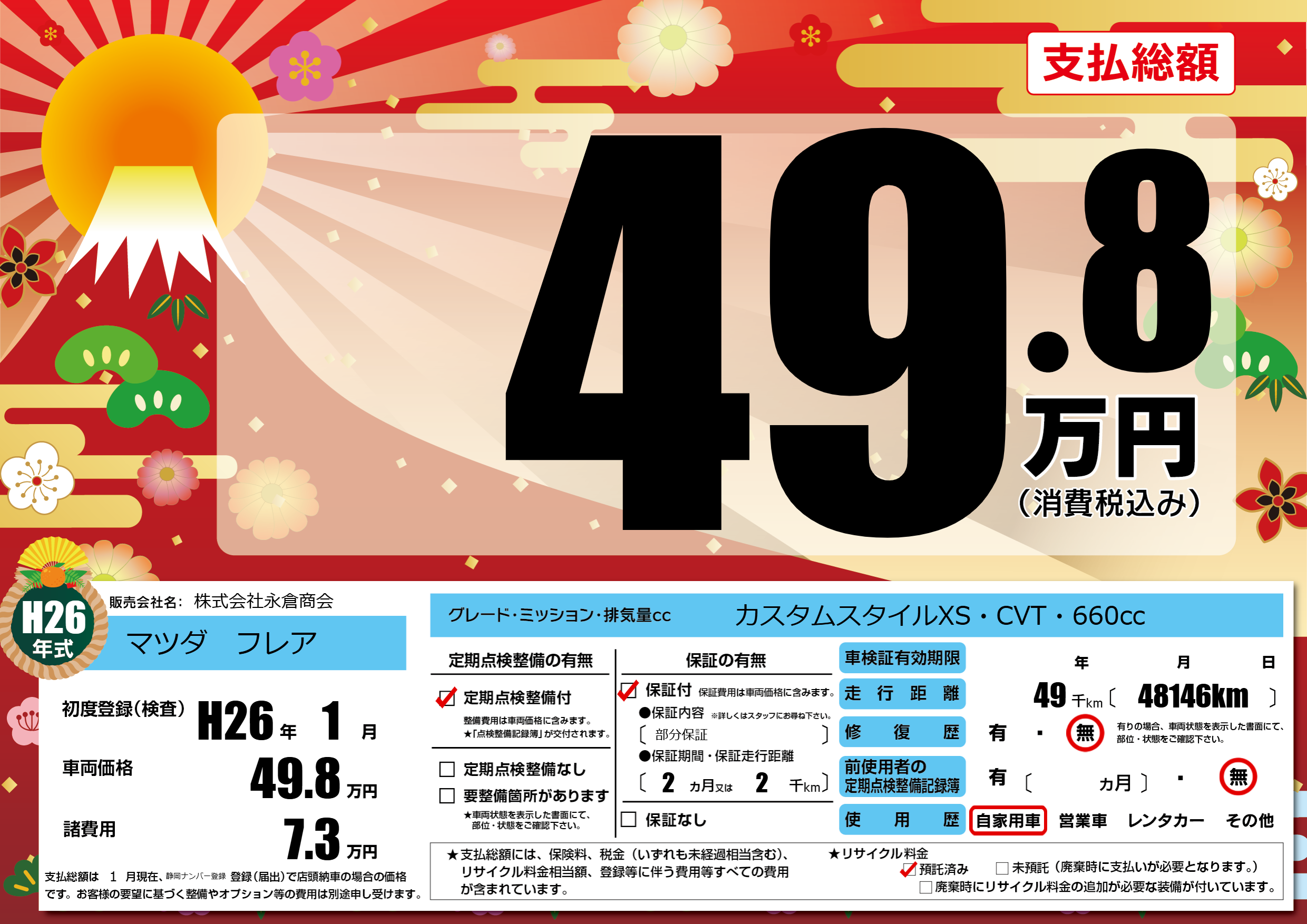 | 走行キロ | 4.9万km | 初年度登録 | H26年1月 |