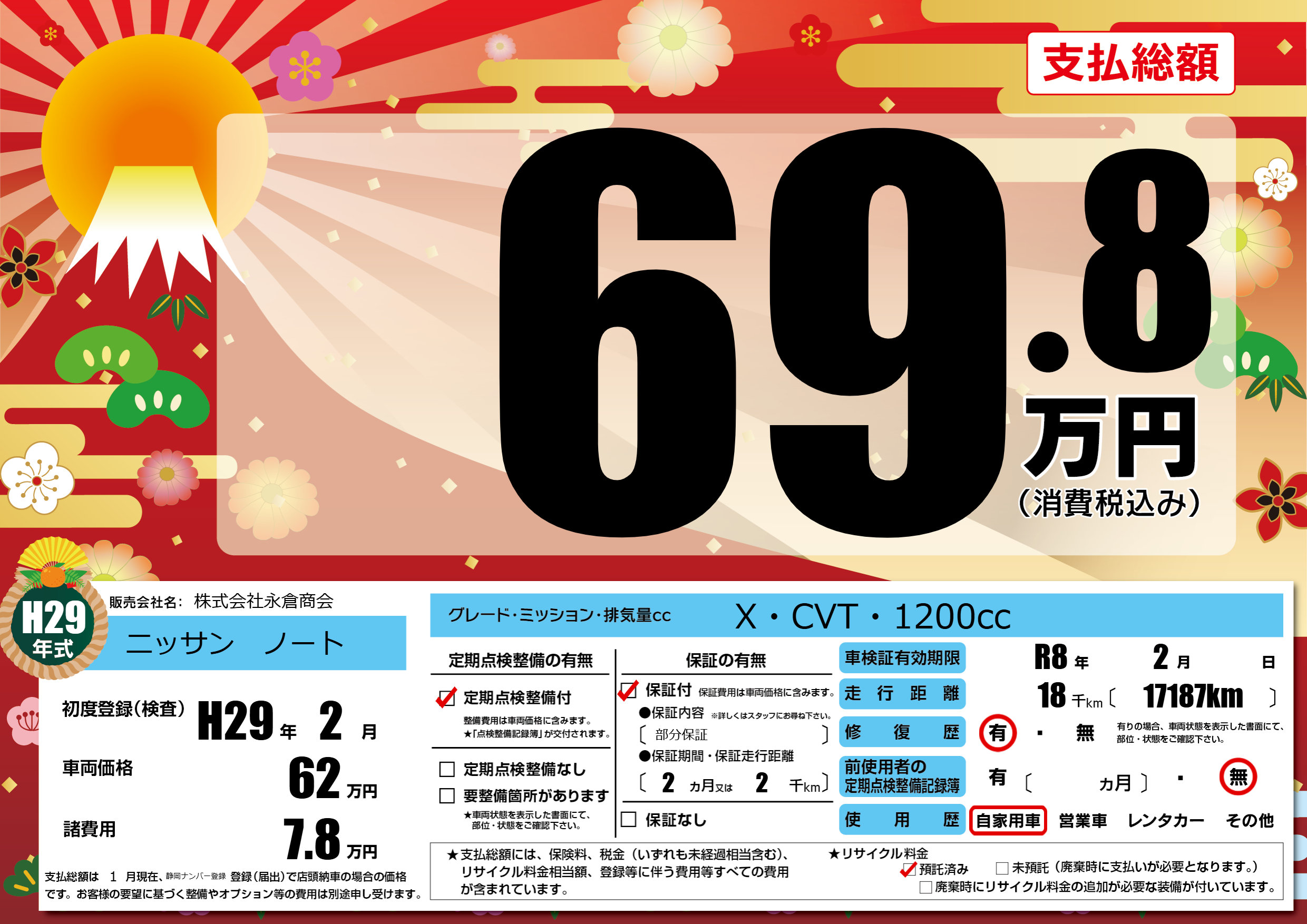| 走行キロ | 1.8万km | 初年度登録 | H29年2月 |